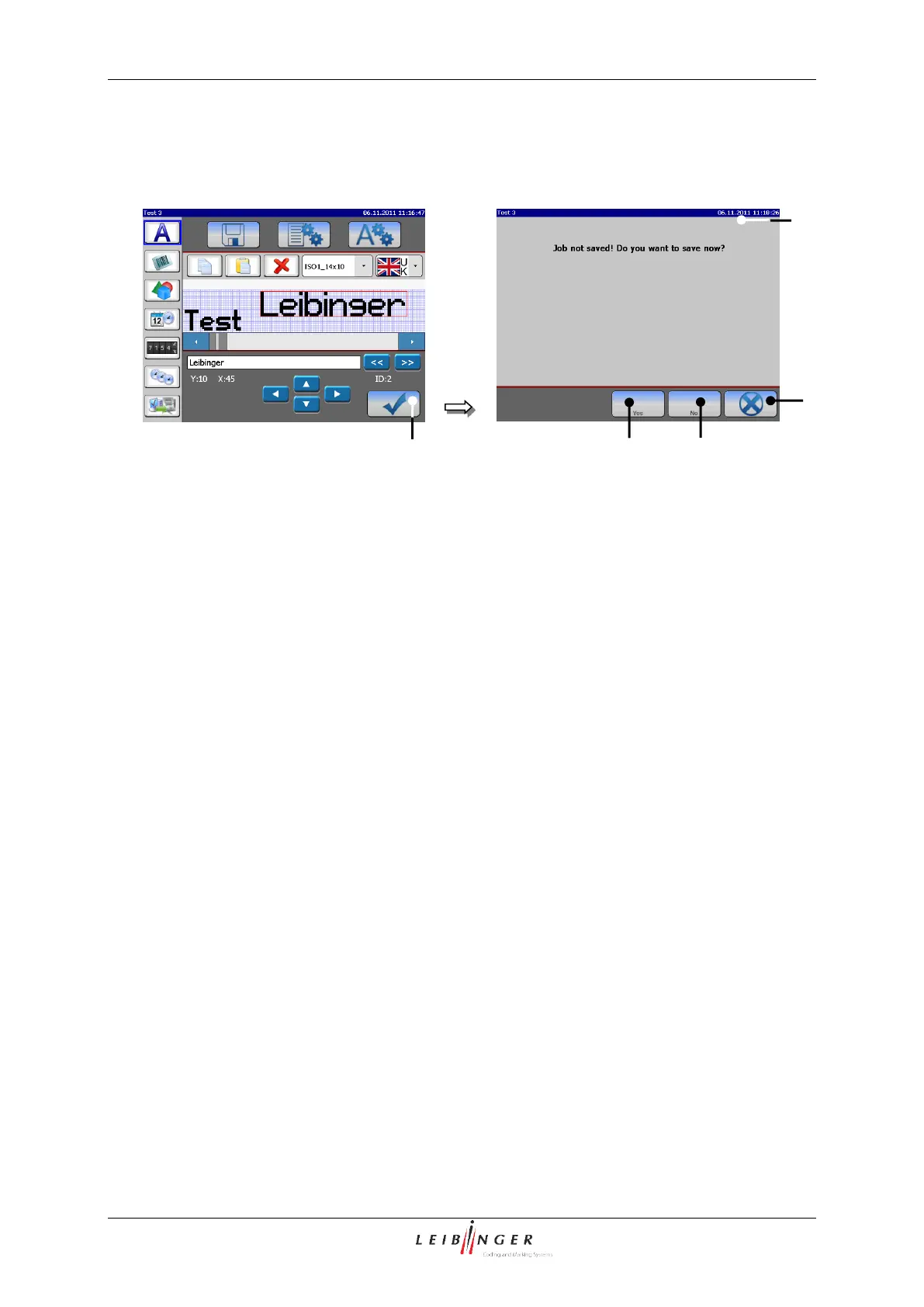 Press the button <Yes> (5) to save the job when leaving the editor.