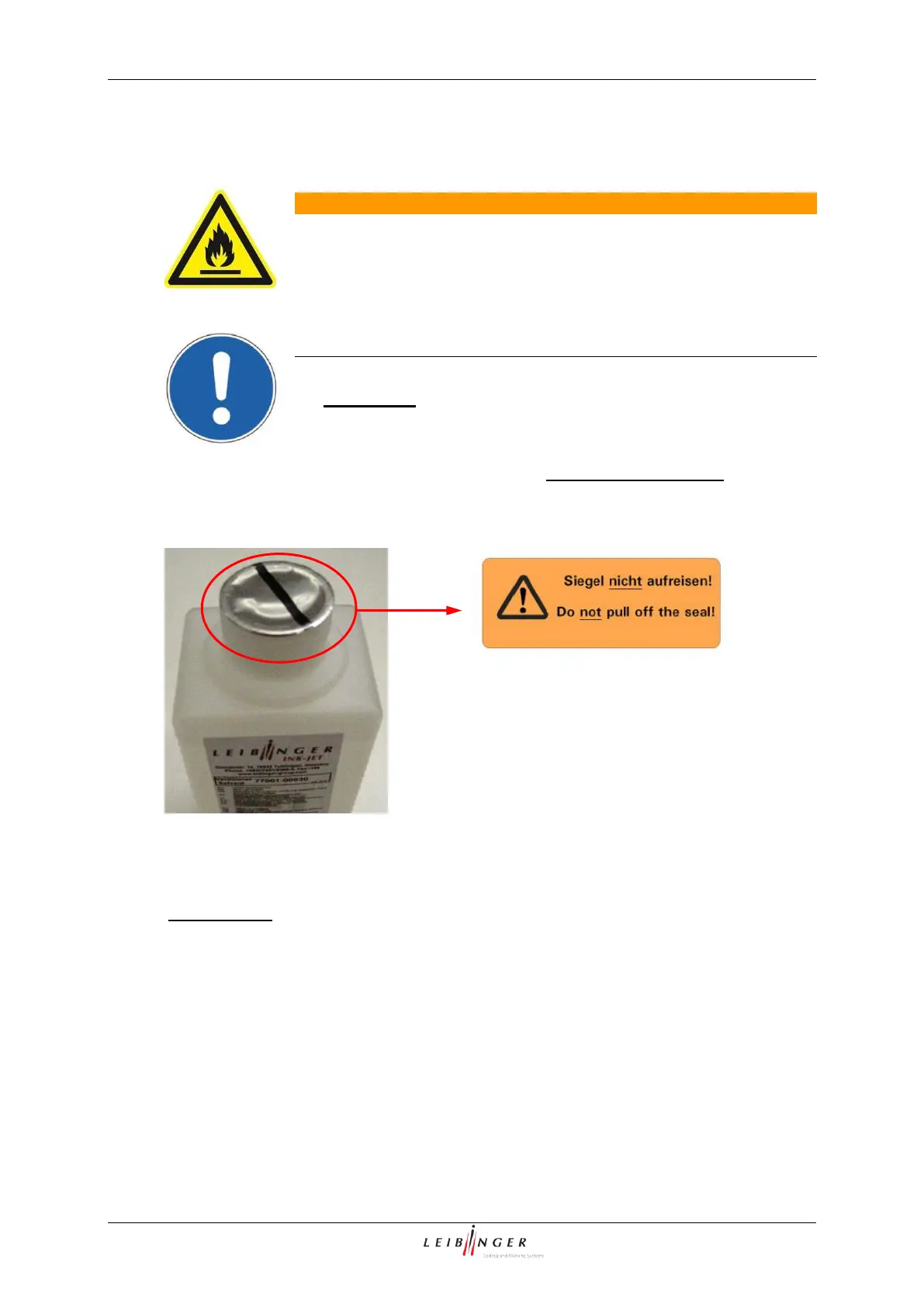 Now open the red cap of the ink or solvent bottle but do not pull of or damage the seal!