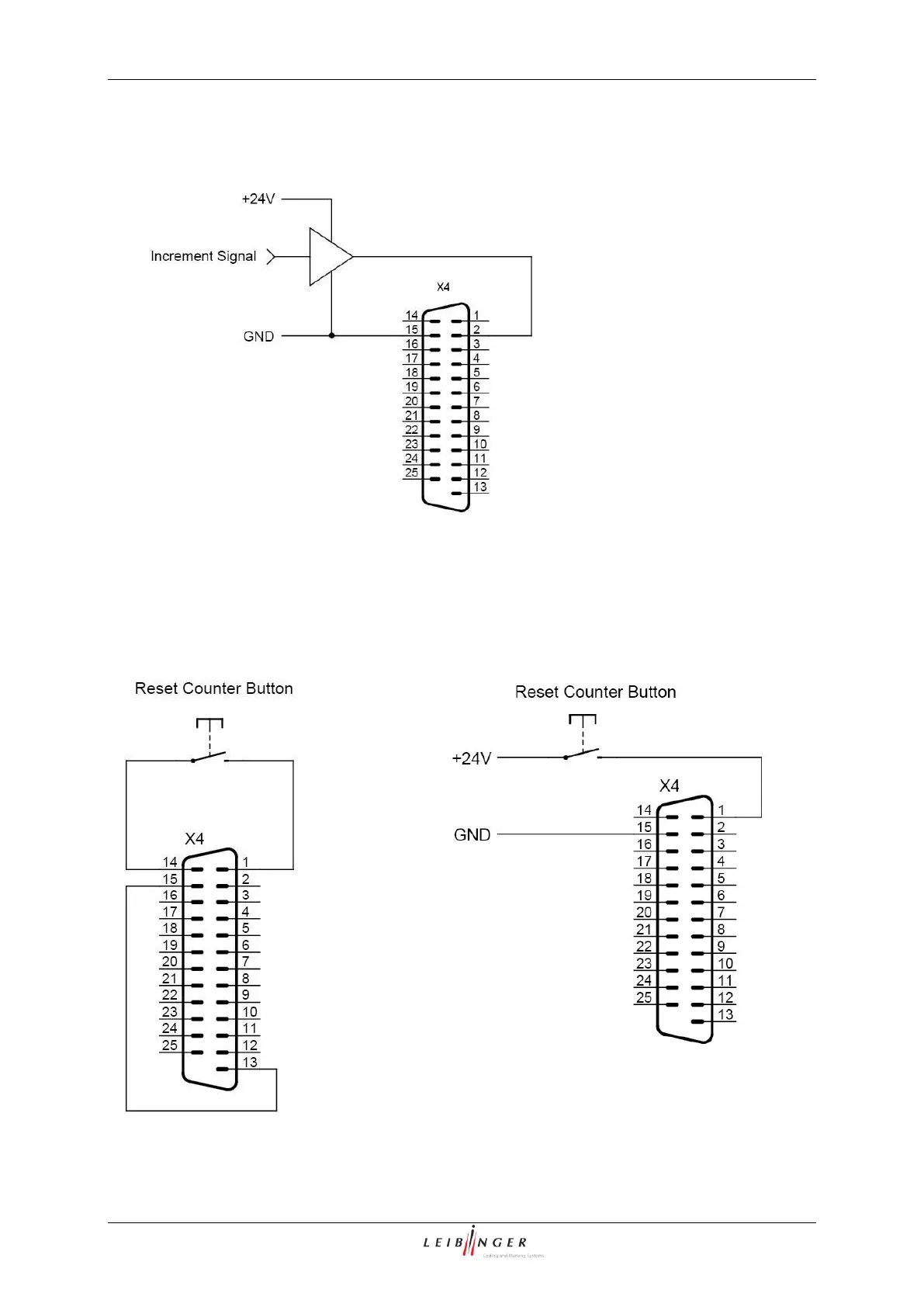Leibinger JET2neo - Interface X4 (Inputs); Increment Counter Signal (PIN 2); Reset Counter Signal