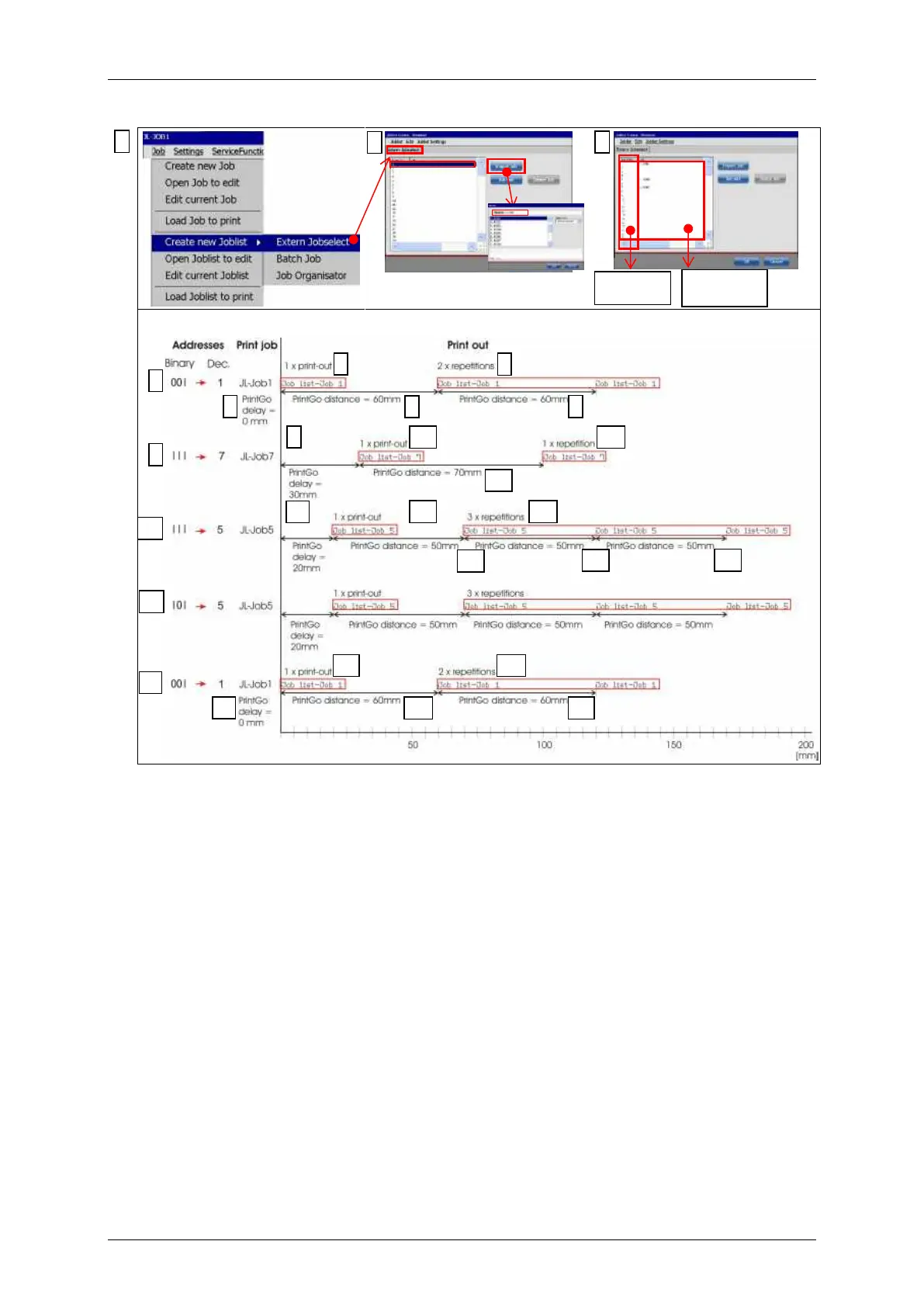 Leibinger JET3 Series - Figure 37 Extern Job Select Example 2: Extern Jobselect with Distances