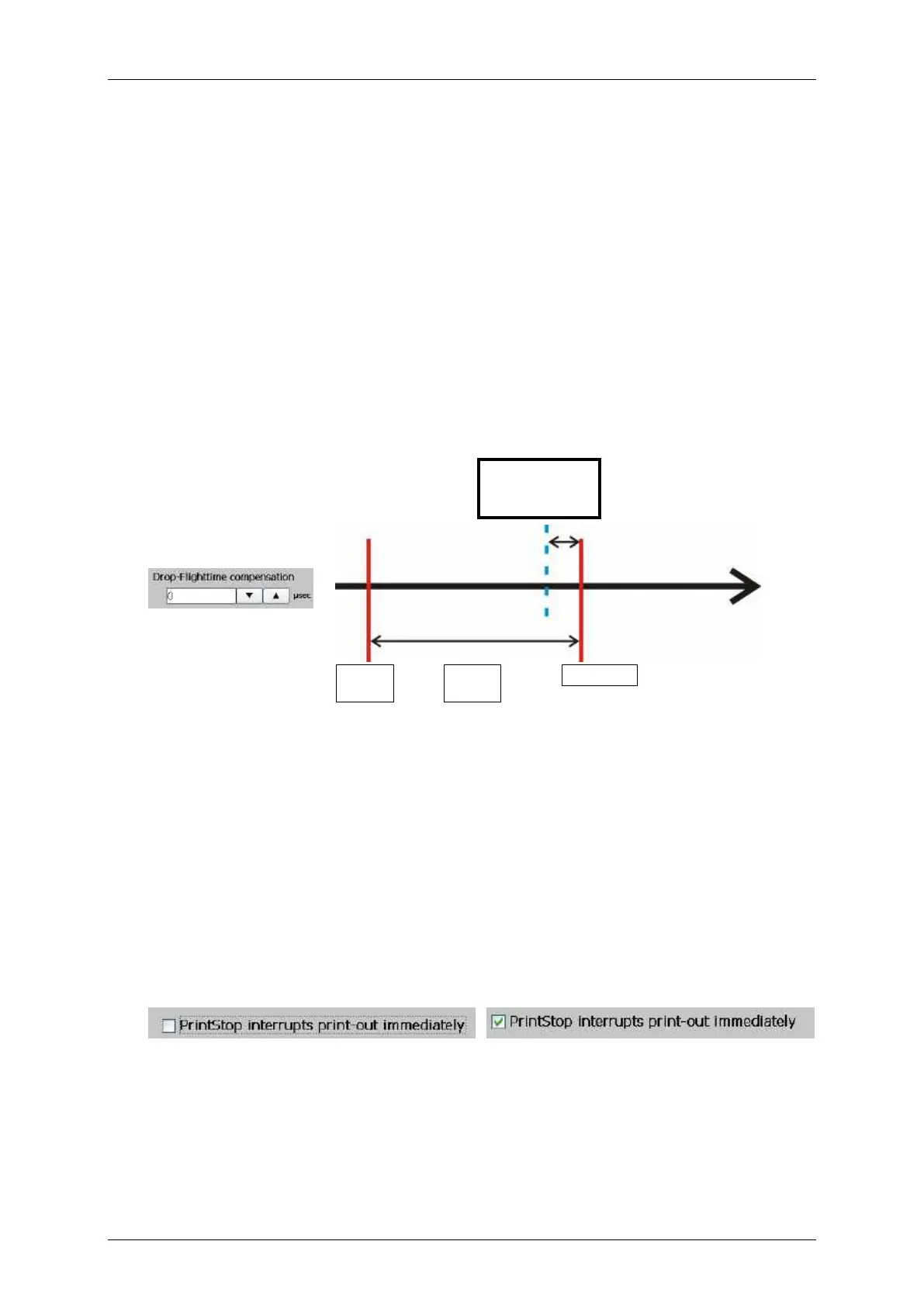 The parameter defines the time by which the ink drops are charged earlier. An earlier