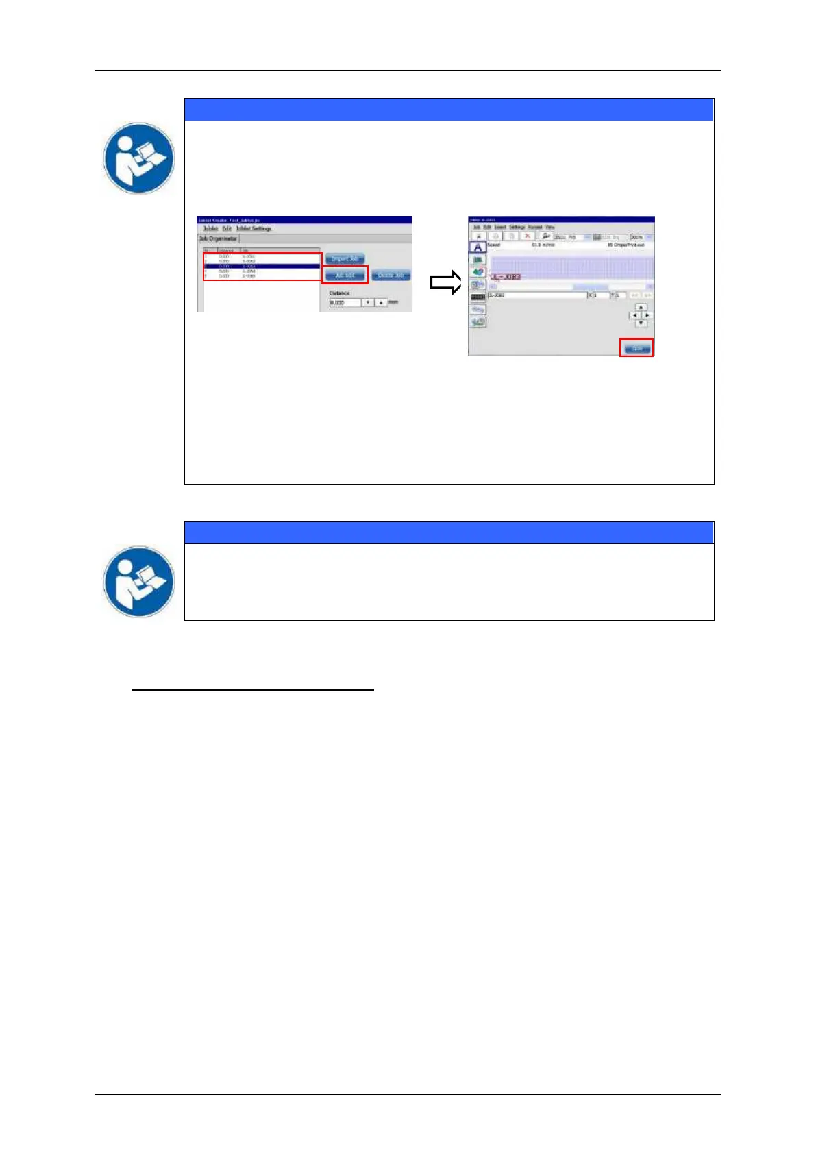 The job can be edited and saved in the <Job Editor>. The <Close> button