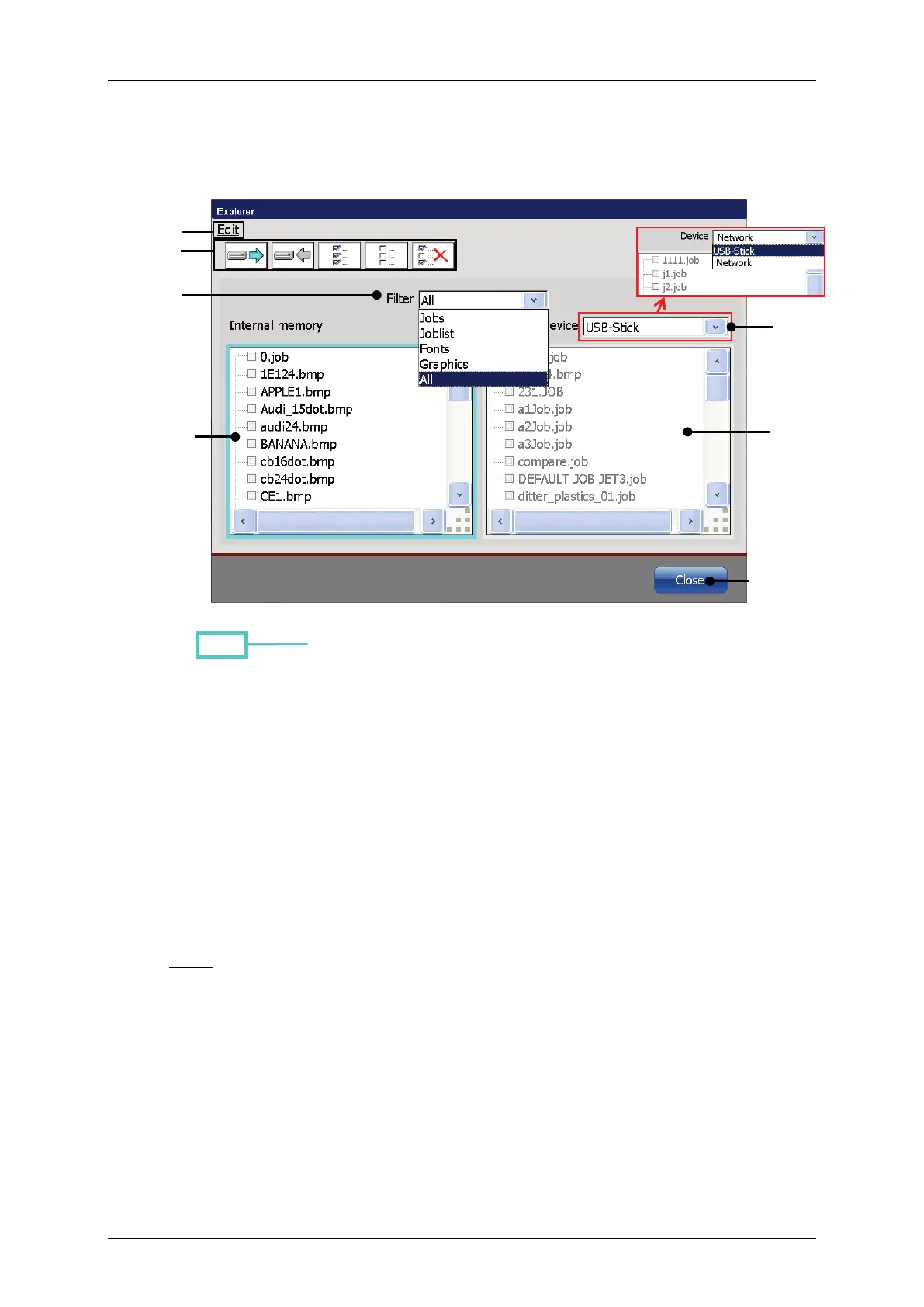 File list <Internal memory> (3): The file list displays the files or the filtered files
