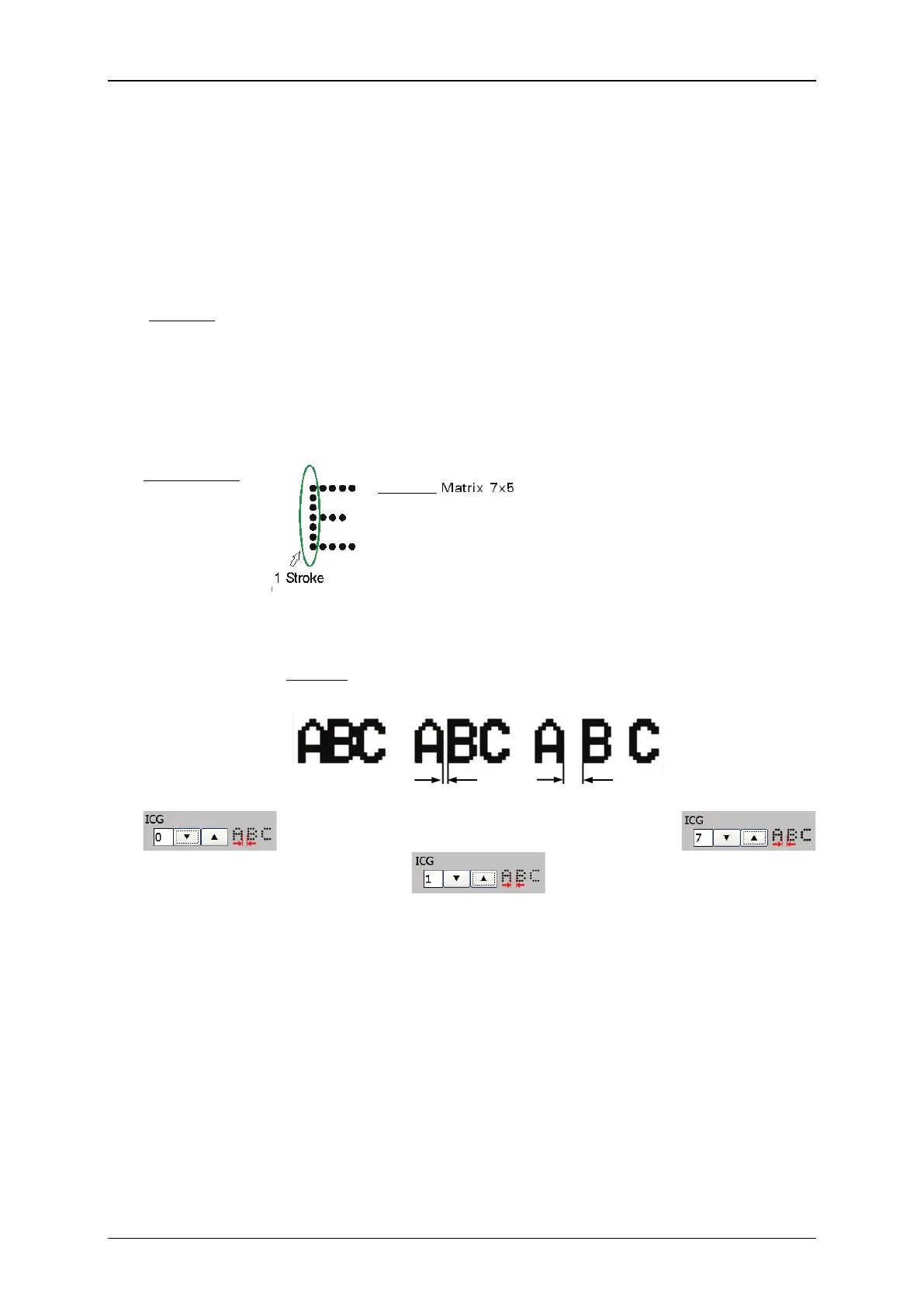 ICG stands for Inter Character Gap. The setting determines the distance between