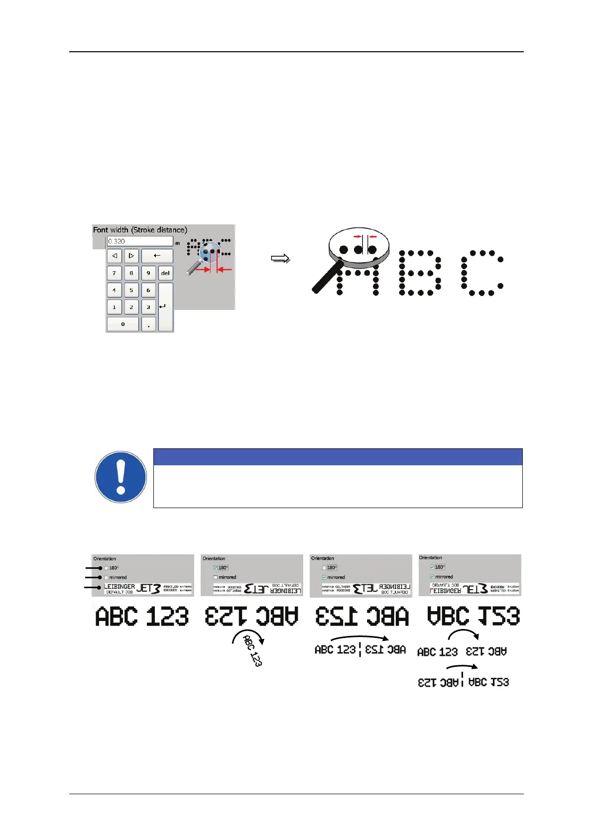 Figure 138 Font parameters - Orientation of the print band