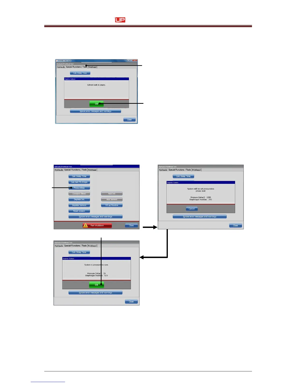Now the routine starts automatically and announces, if the hydraulic system is absolutely