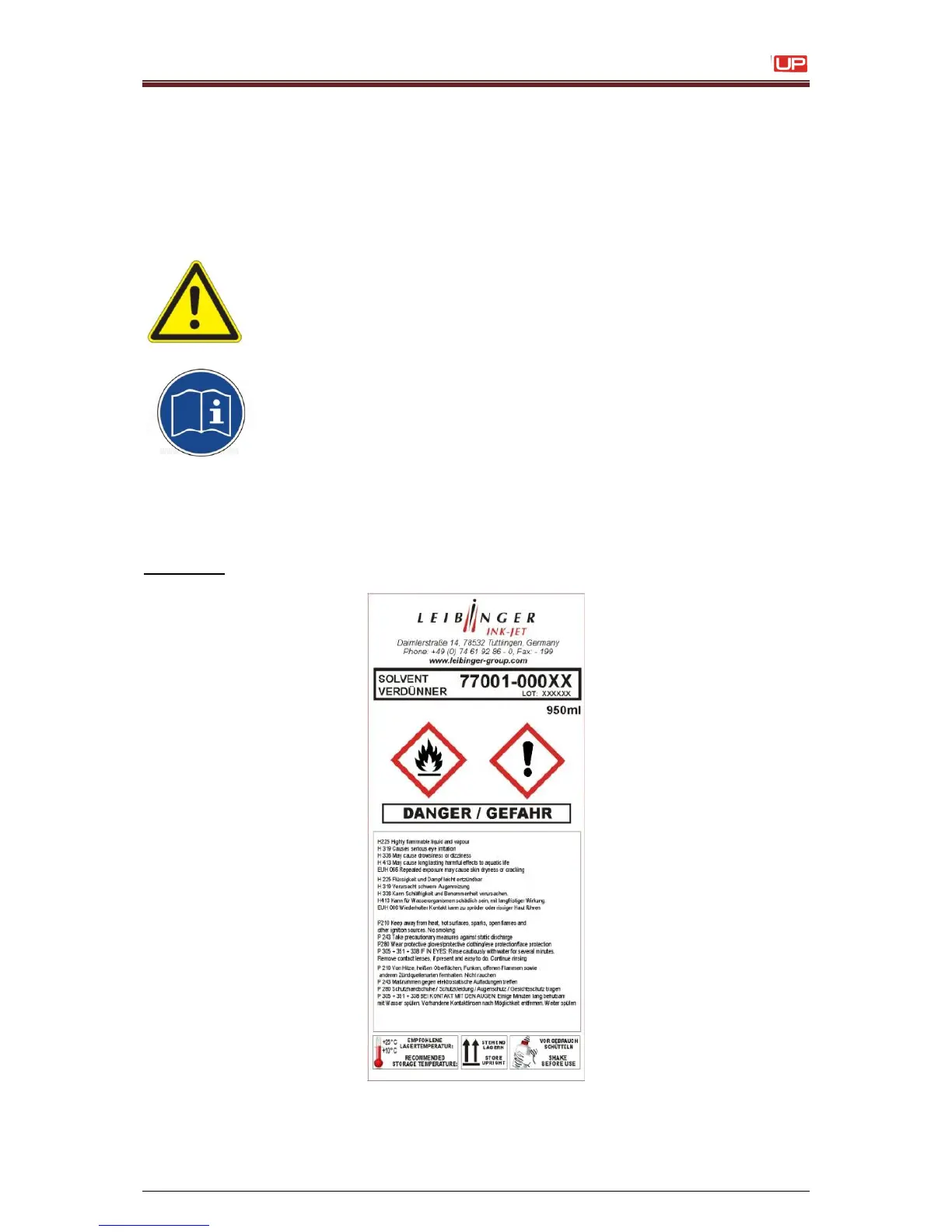 When handling consumables (inks/solvents) the danger instructions and