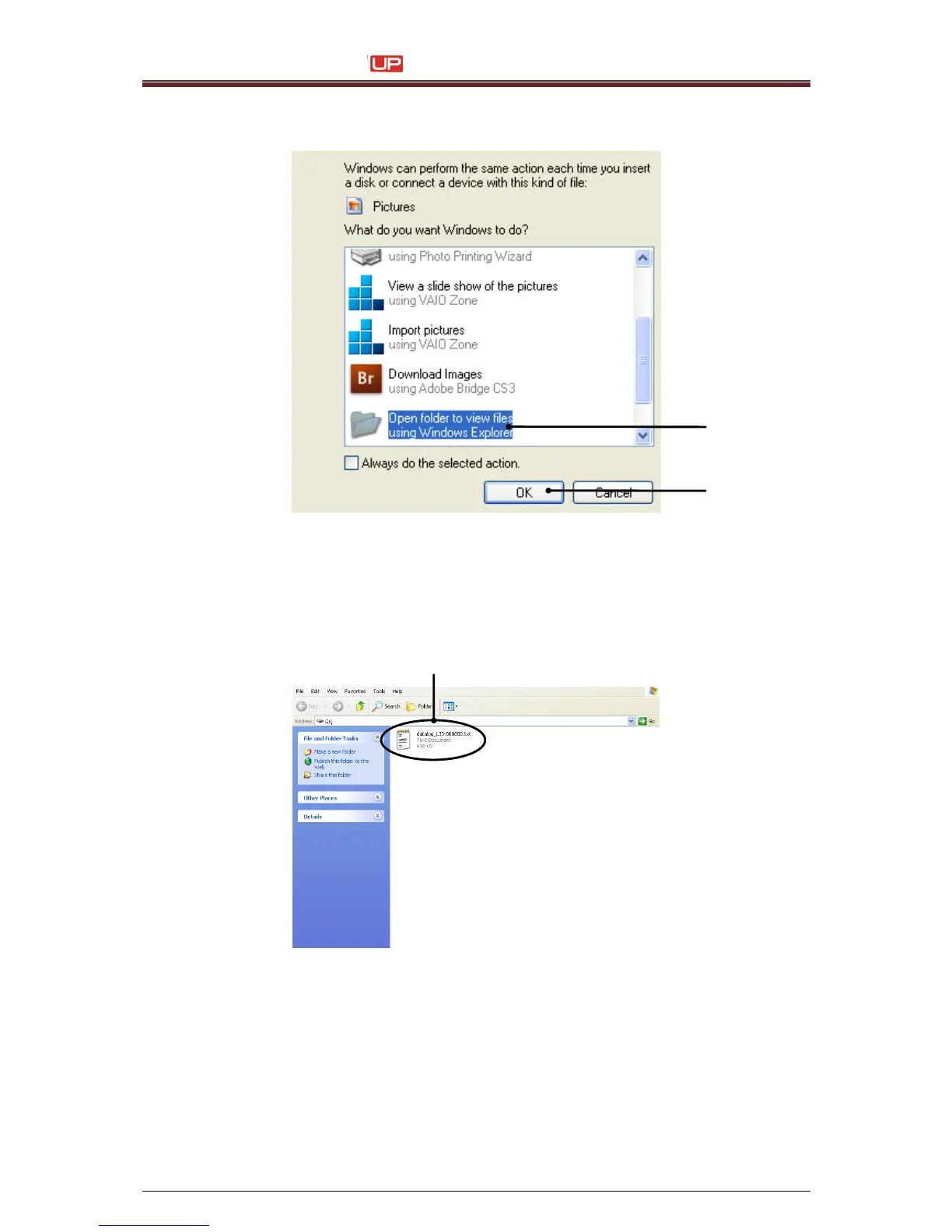 9. Select the direct button <Open folder to view files> (1) and confirm with <OK> (2)