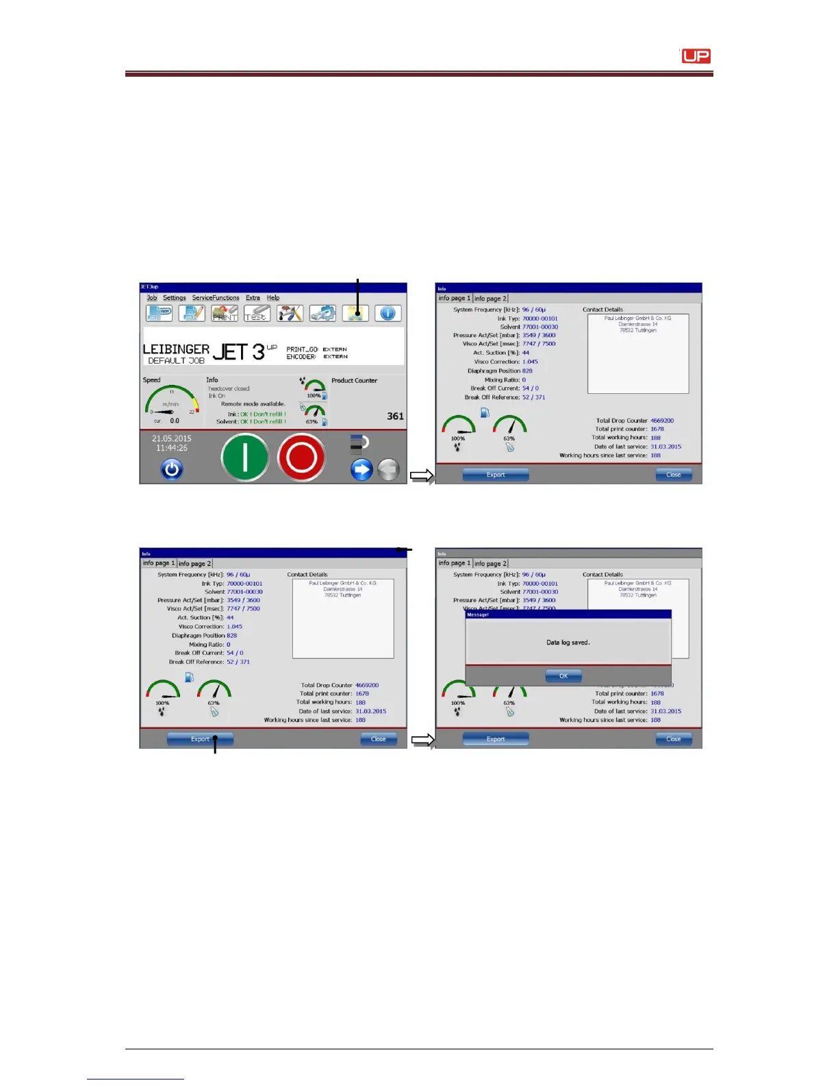 4. Push the button <Export> (1) in the <Info> menu (2).