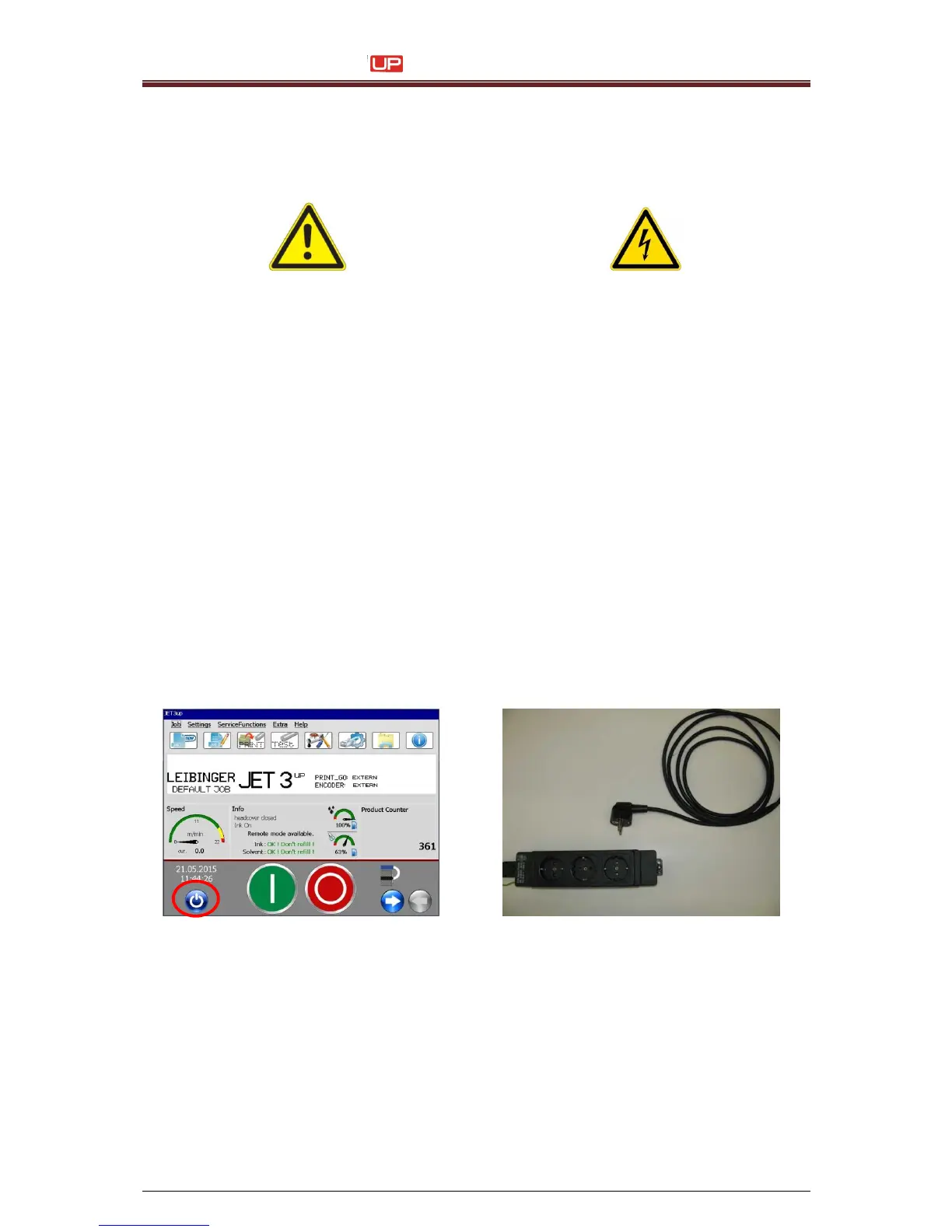 The JET3up printer does not have a main switch or changeable fuses.