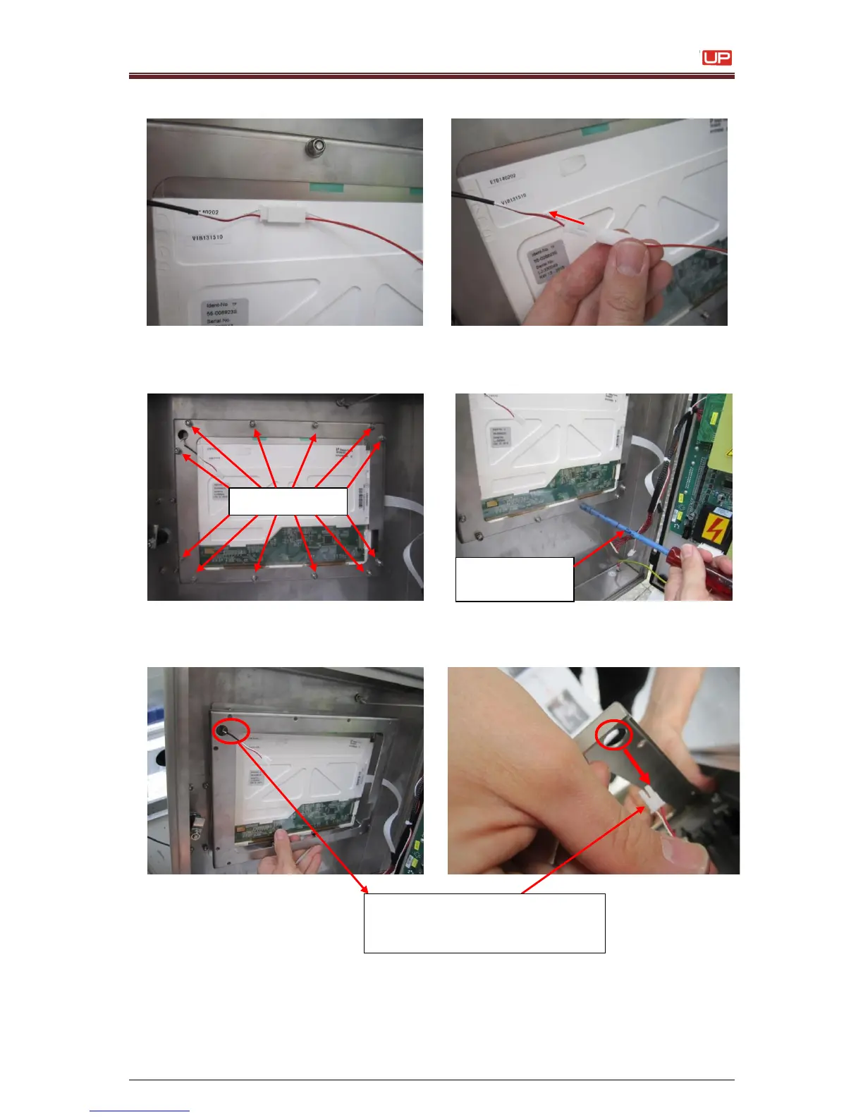 5. Unscrew the 12 nuts for the display attachment