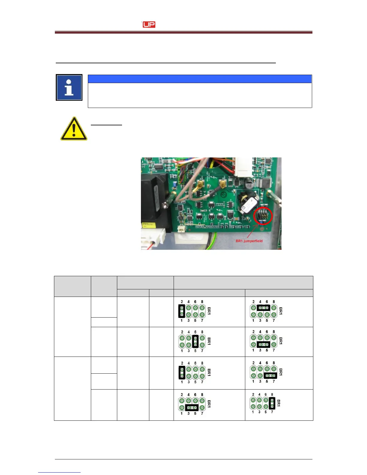 Leibinger JET3 up - Jumper Setup; Table of Settings