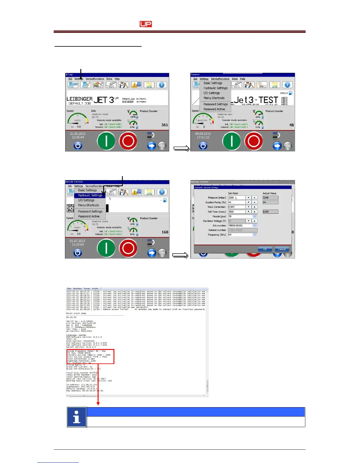 Leibinger JET3 up - Enter the Hydraulic Settings