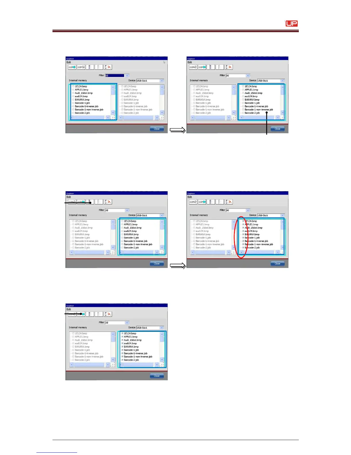 6. Press the button <select all files> (1).