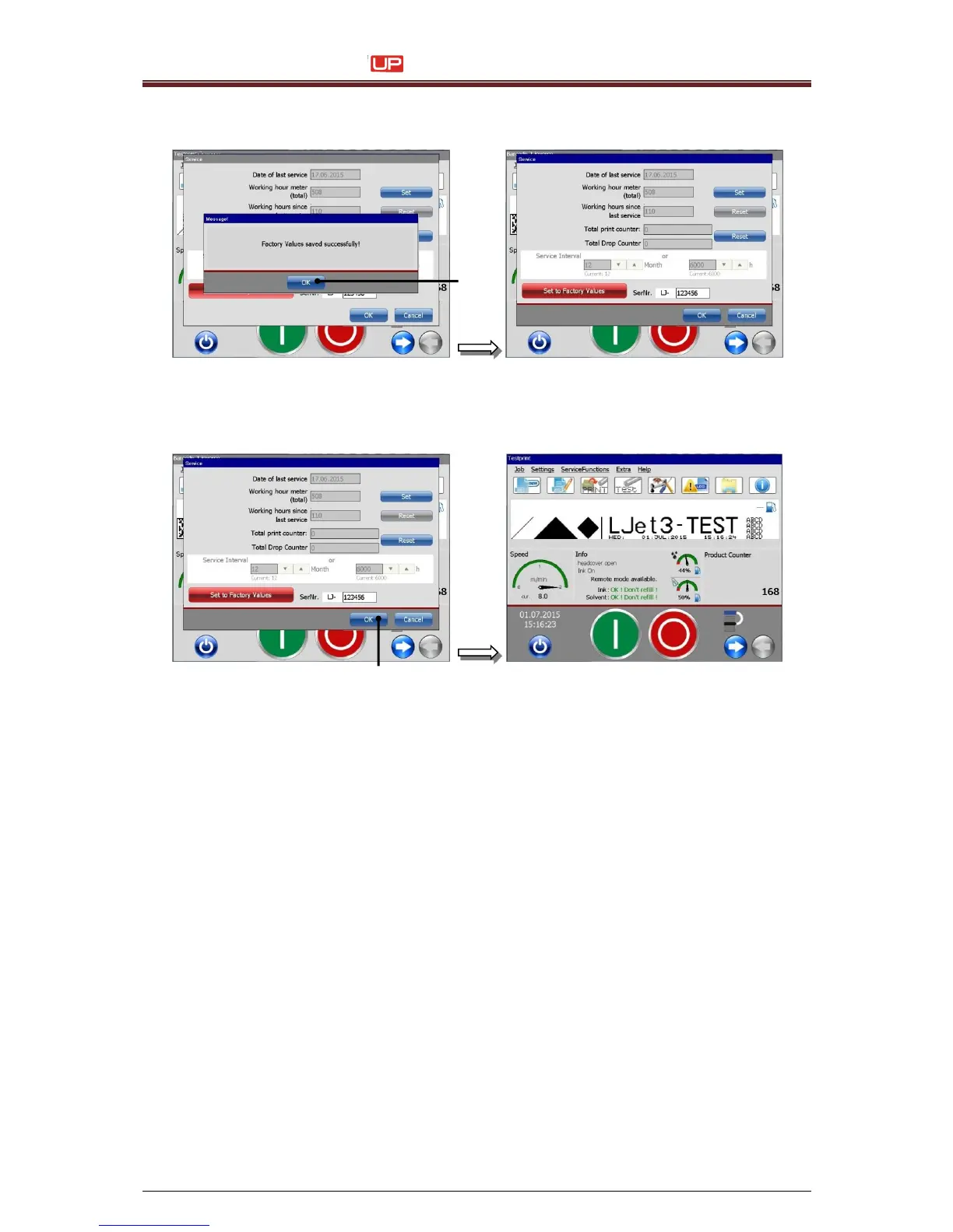 11. With pressing the <OK> button, (1) the factory settings will be saved.