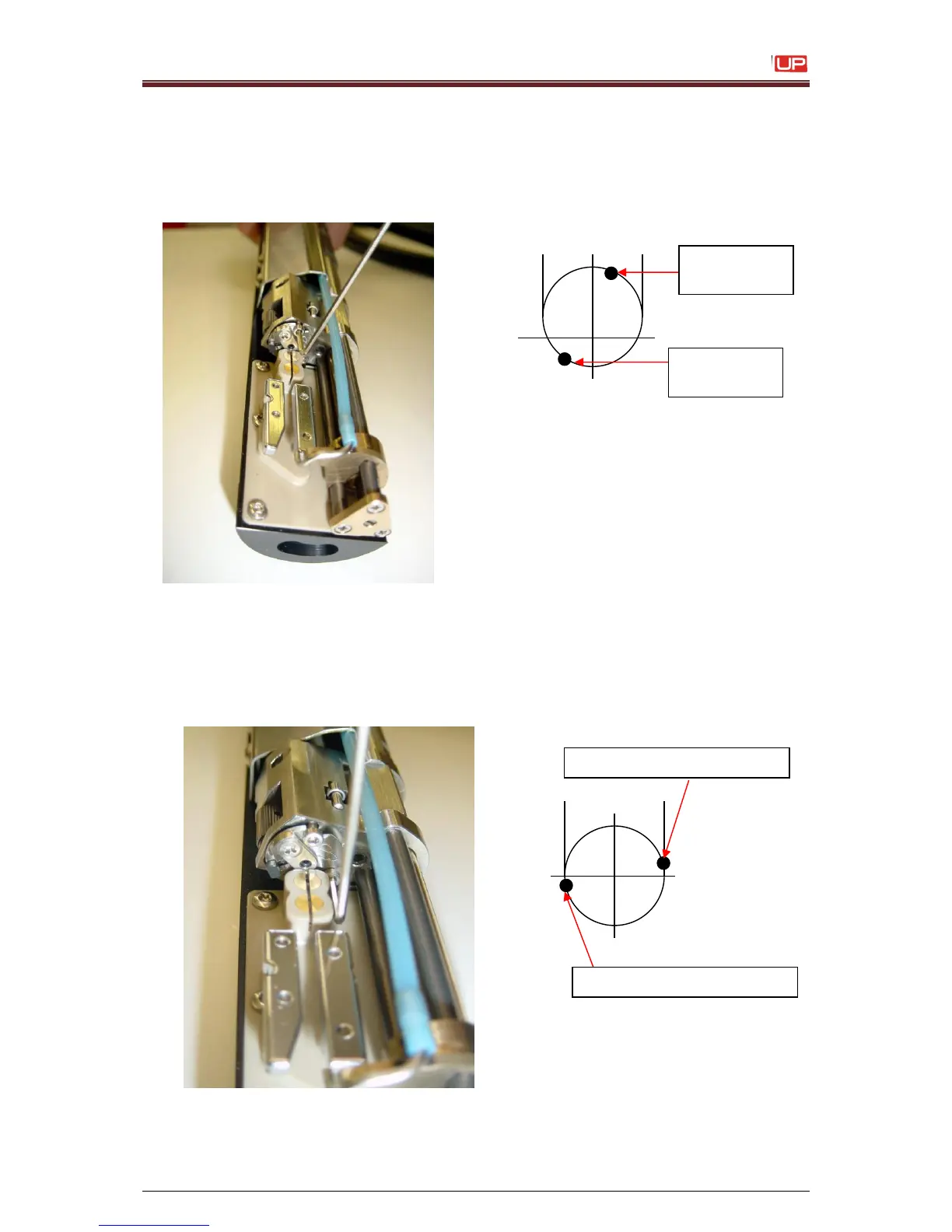 Rotating the upper adjusting screw CW, the ink stream is moving a little bit angular in