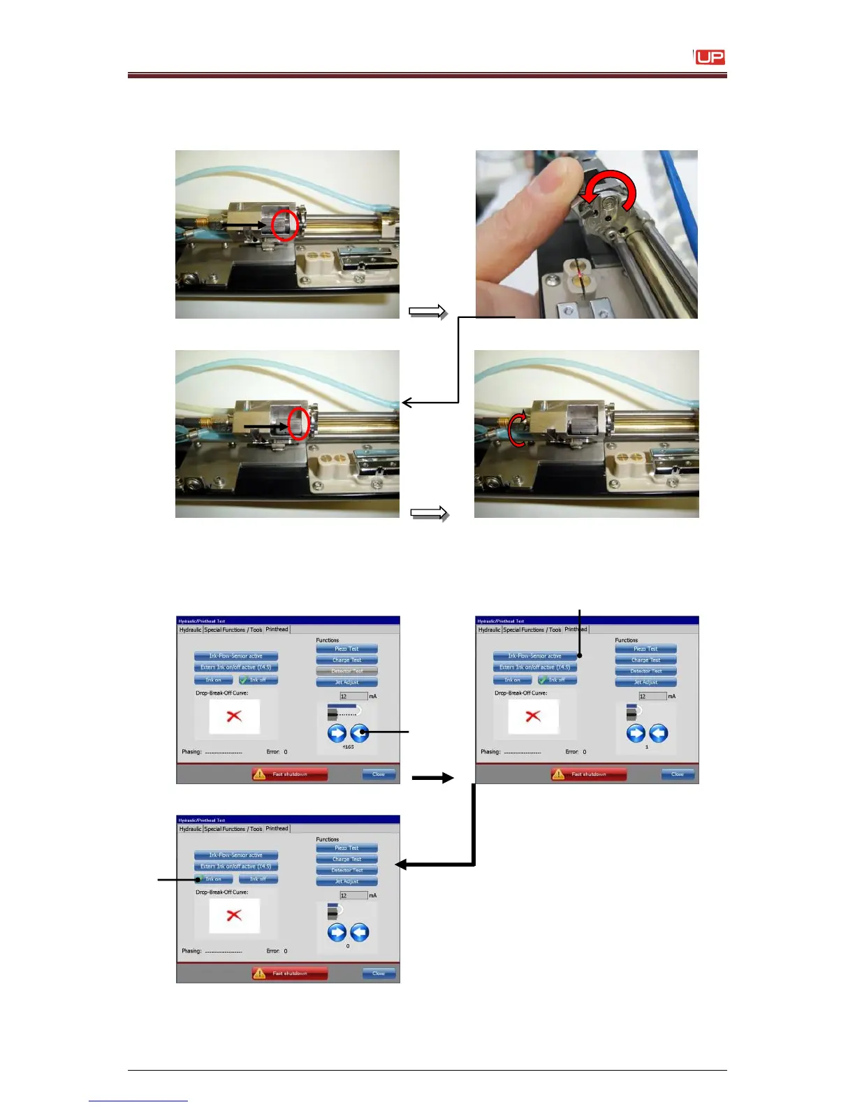13. Replace the nozzle and turn the knurled-head-screw to stop position. Thereby the