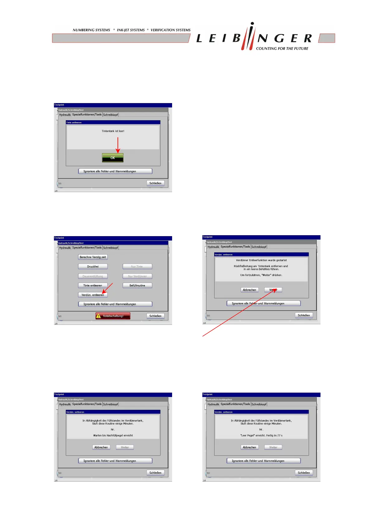6. To drain the solvent-tank please activate the function „deplete solvent (Verdün.