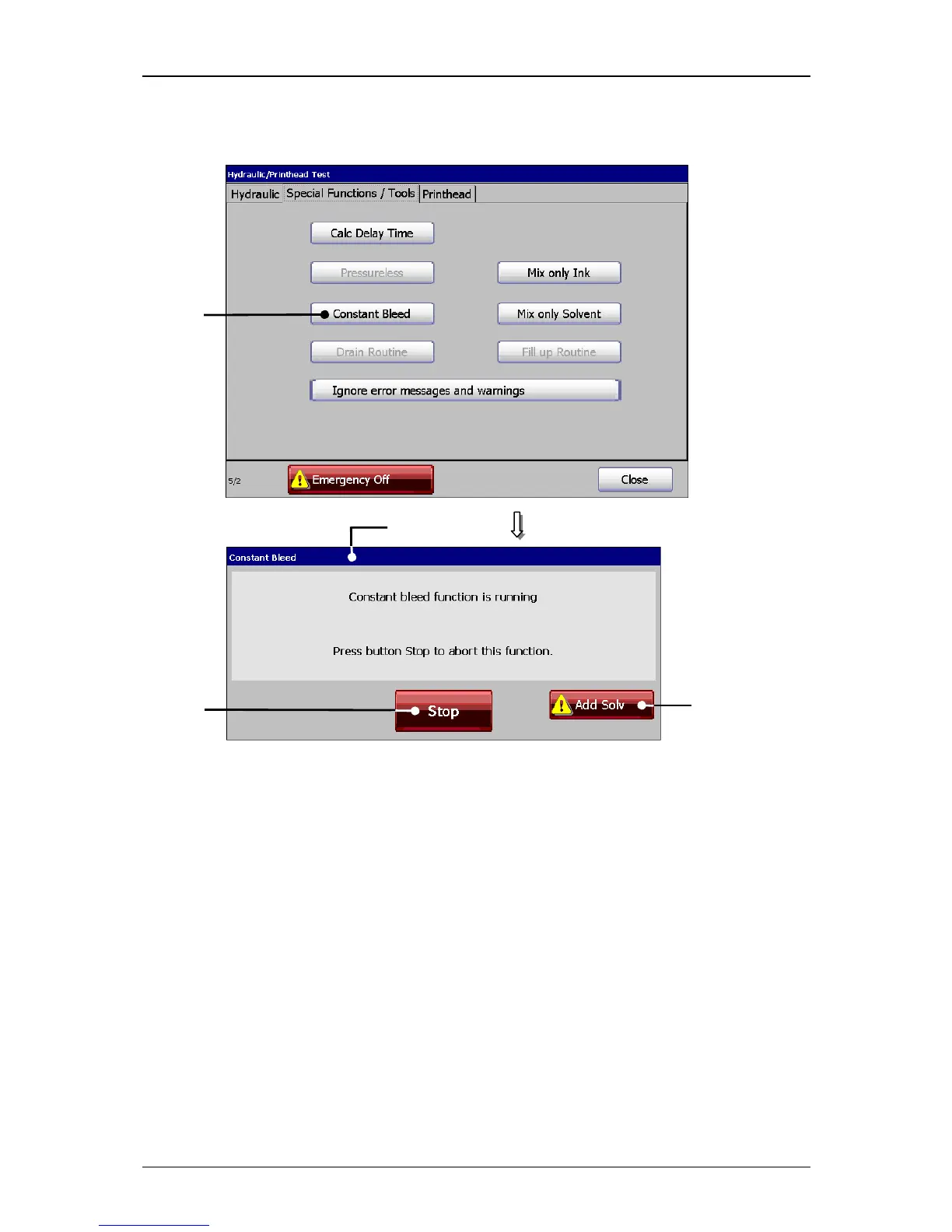 2 – Message <Constant Bleed> 4 – Button <Add Solv.>