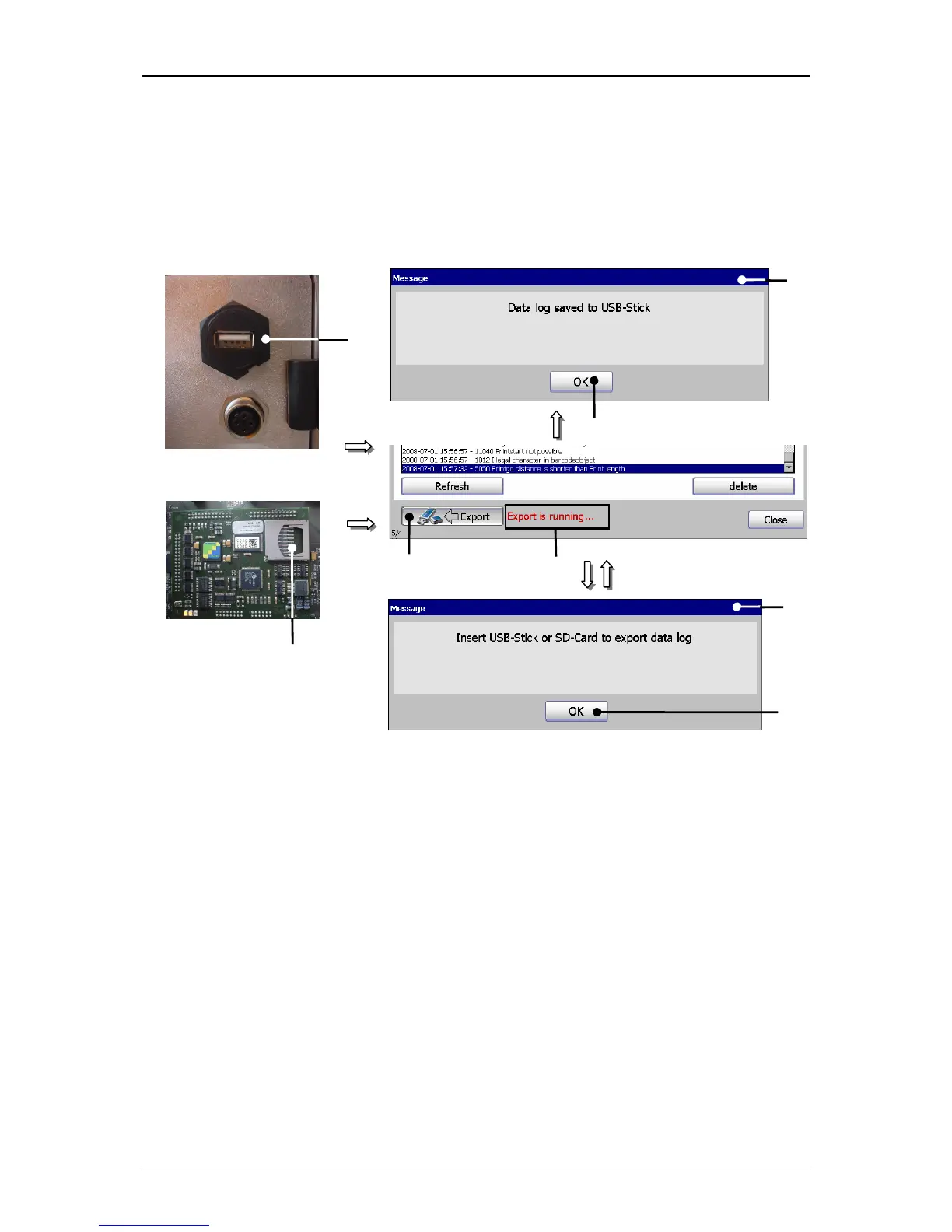 3 – Button <Export> 7 – Message <Insert storage medium>