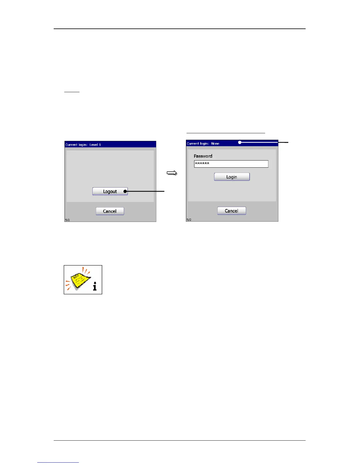 Press the button <Logout> (1). The dialog field is closed and the user is logged