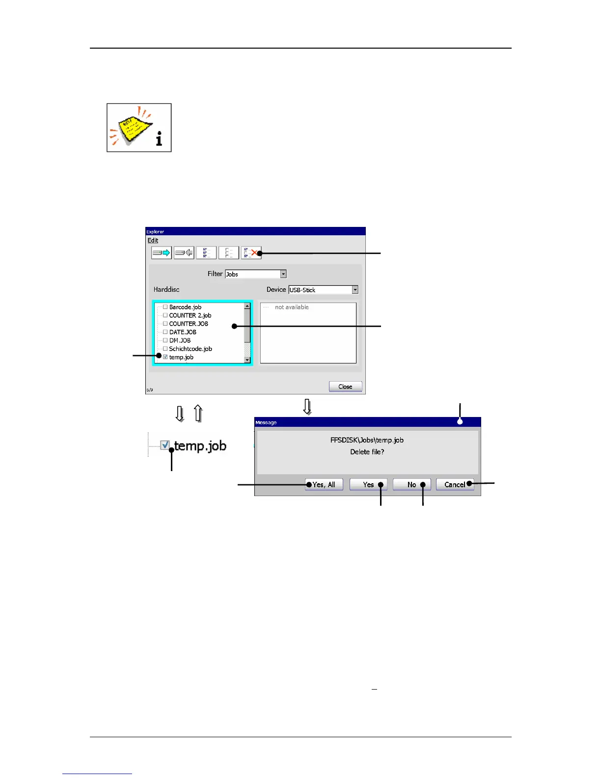 4 – Message <Delete file> 8 – Button <Yes, All>