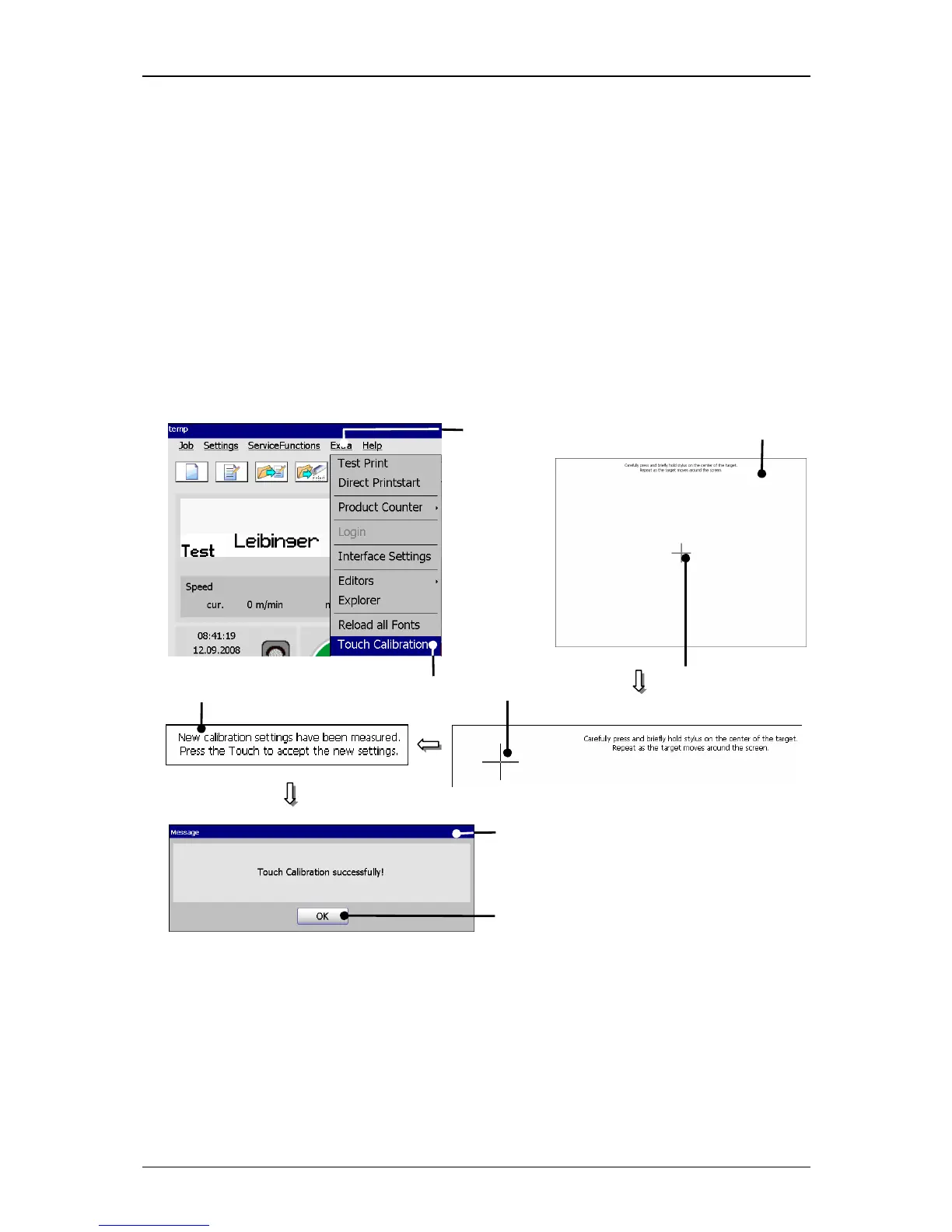 2 – Option <Touch Calibration> 6 – Message <Touch calibration successfully>