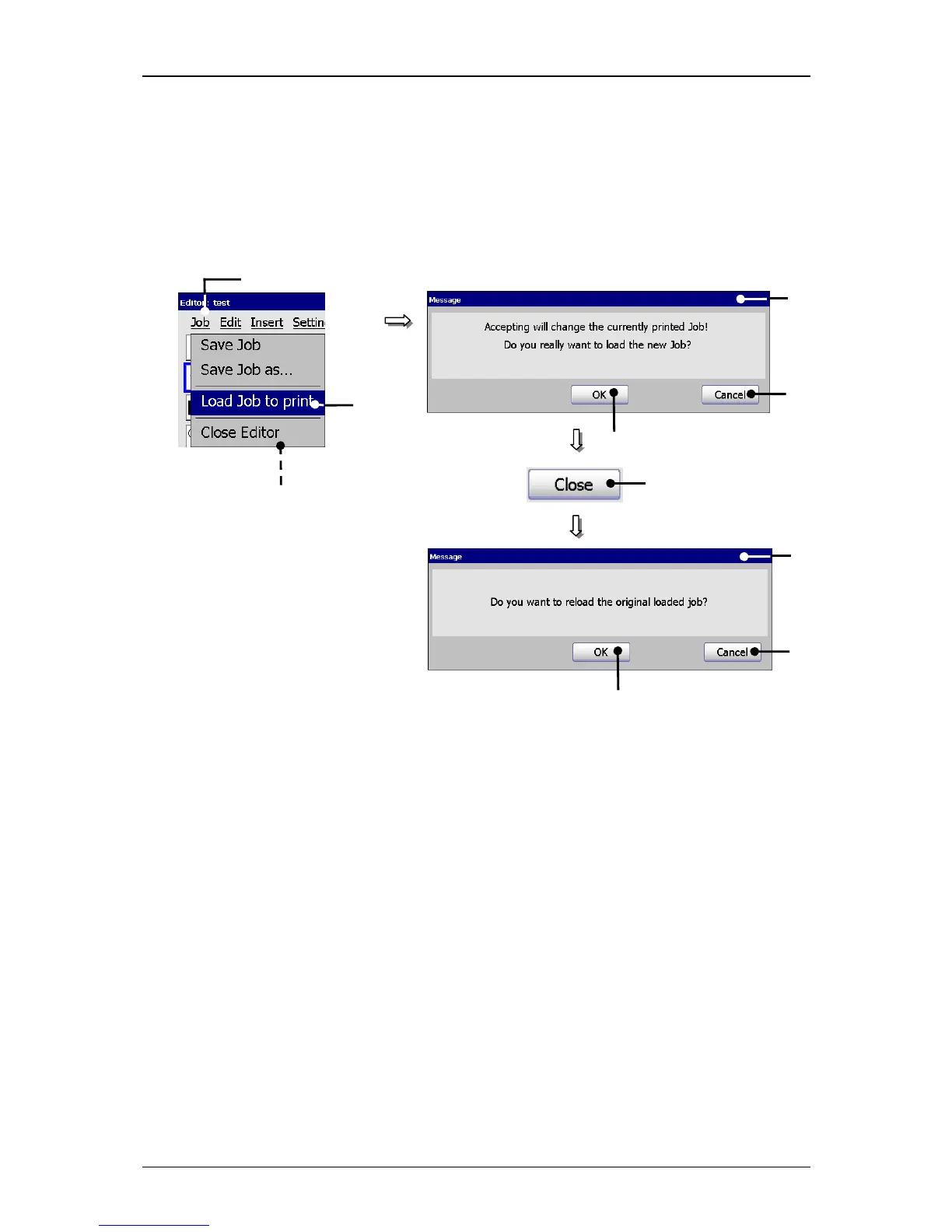 2 – Option <Load Job to print > 7 – Option <Close Editor>