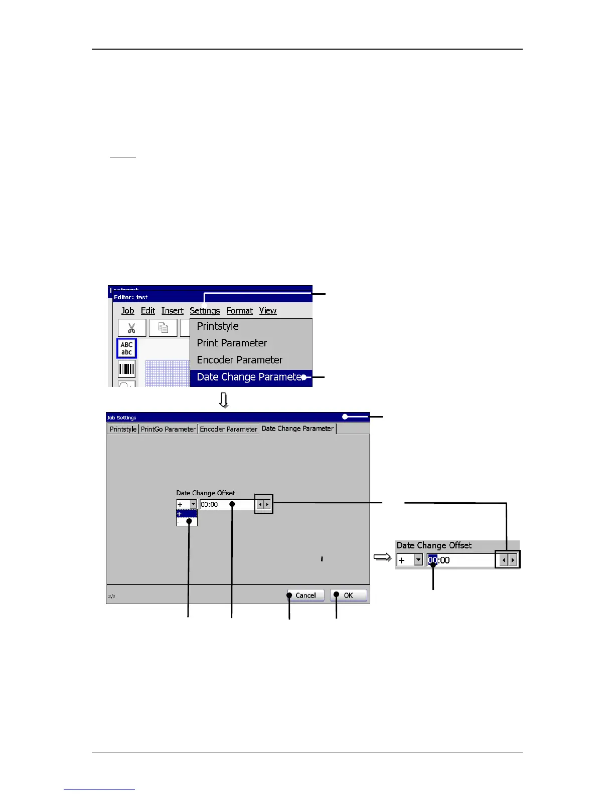 Press the button <Settings> (1) and the option <Date Change Parameter>