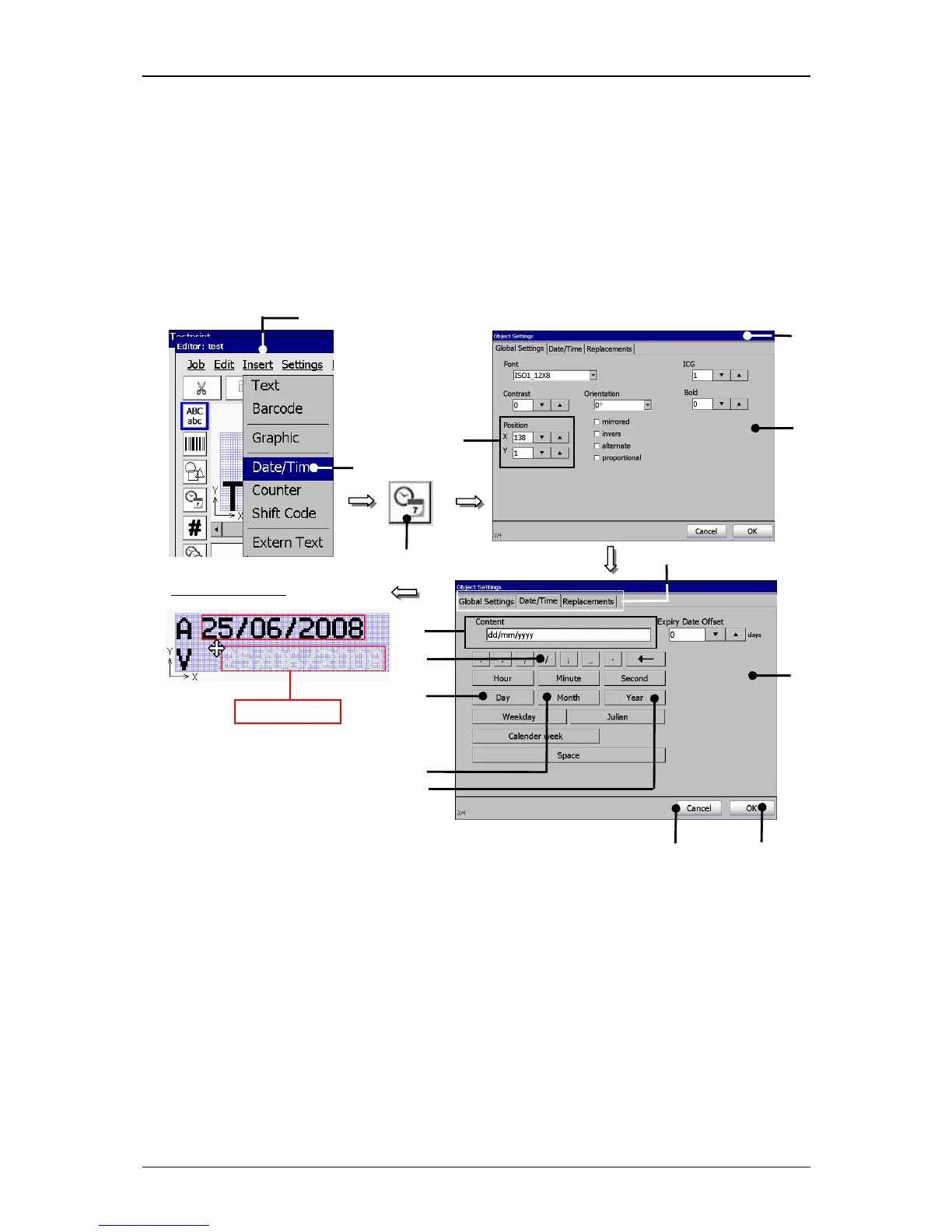 4 – Menu <Object settings (Date/Timet)> 12 – Display field <Content>