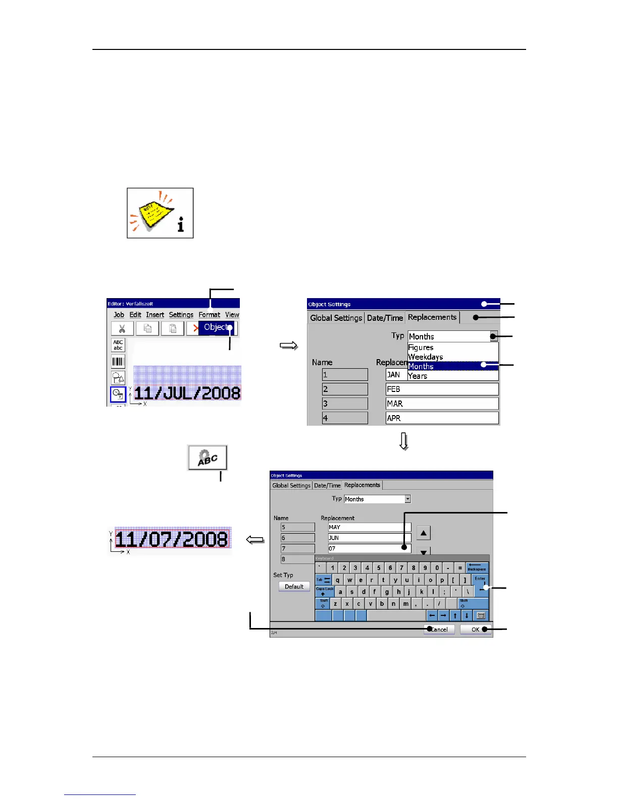 4 – Menu <Object Settings (Date/Time)> 10 – Button <OK>