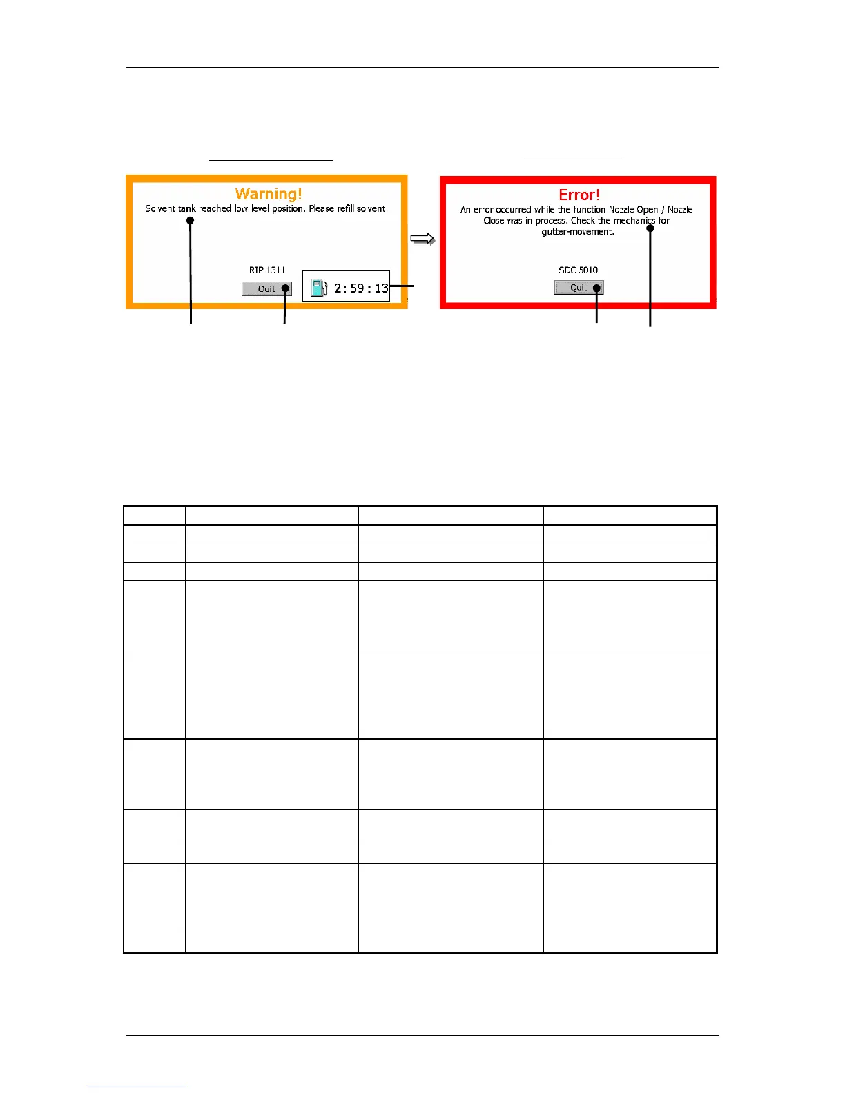 5001 Phasing error Charging electrode is dirty. Clean charging electrode