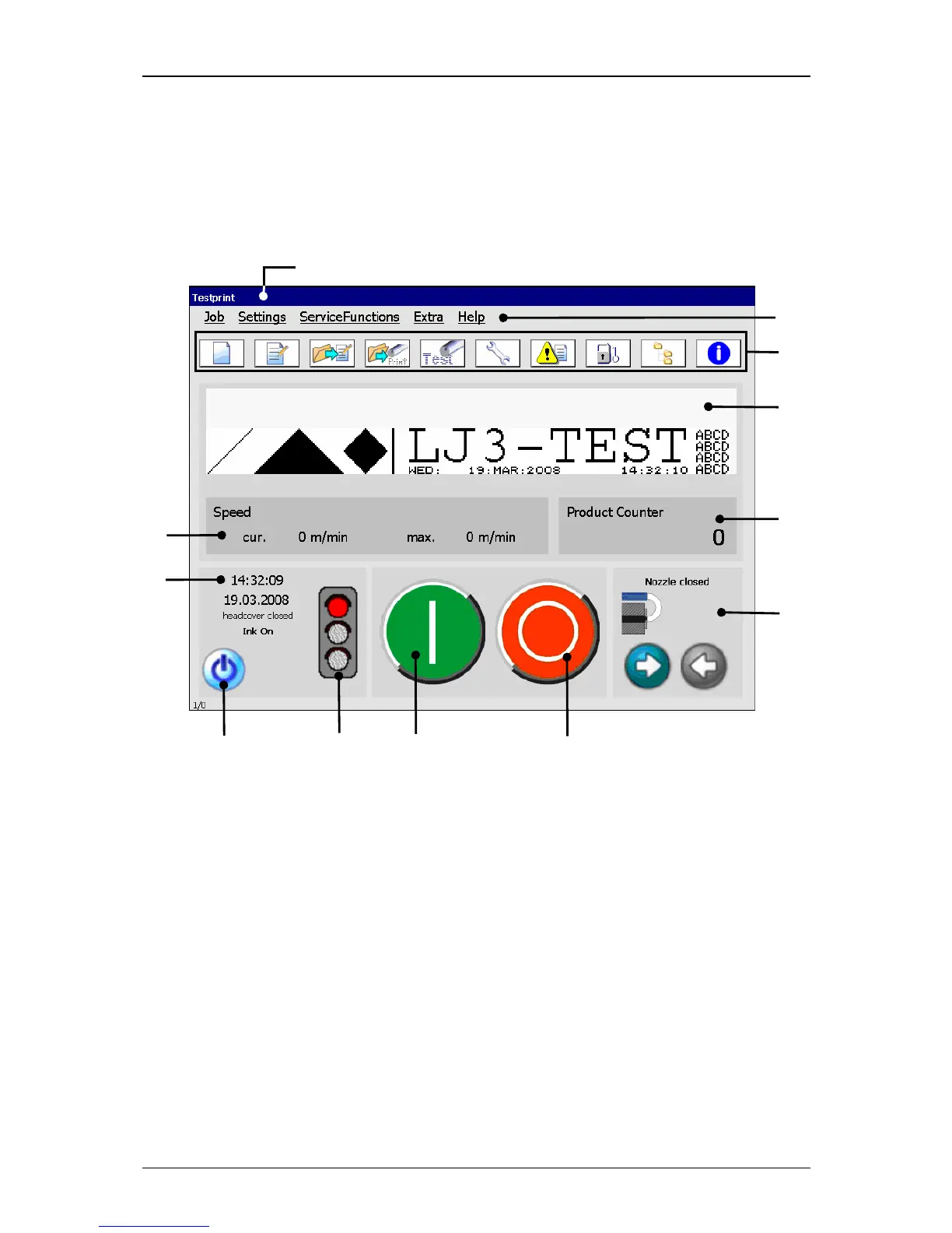 2 – Main menu bar 8 – Status field <Nozzle>