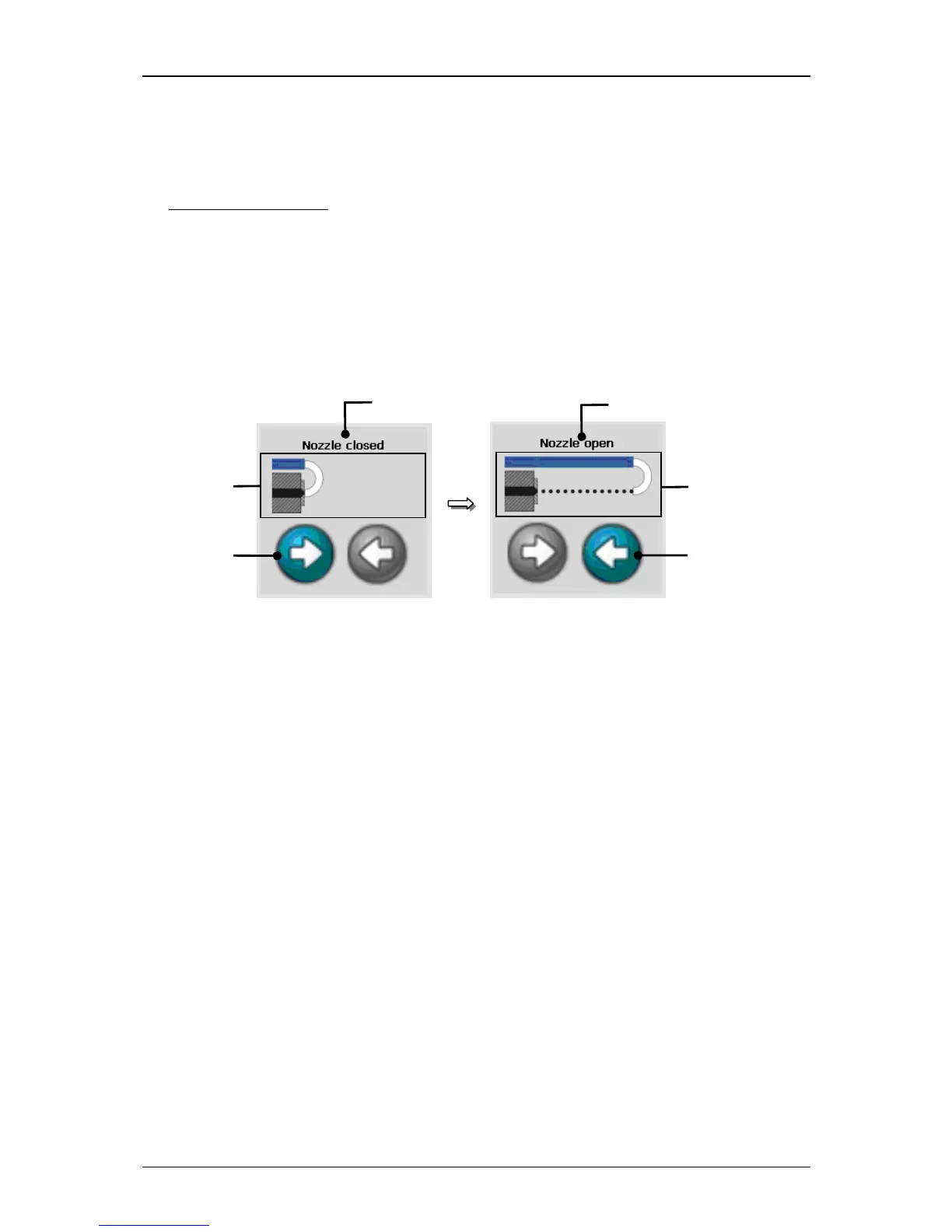 With the buttons <Opening nozzle> (3) and <Closing nozzle> (4) you can open or