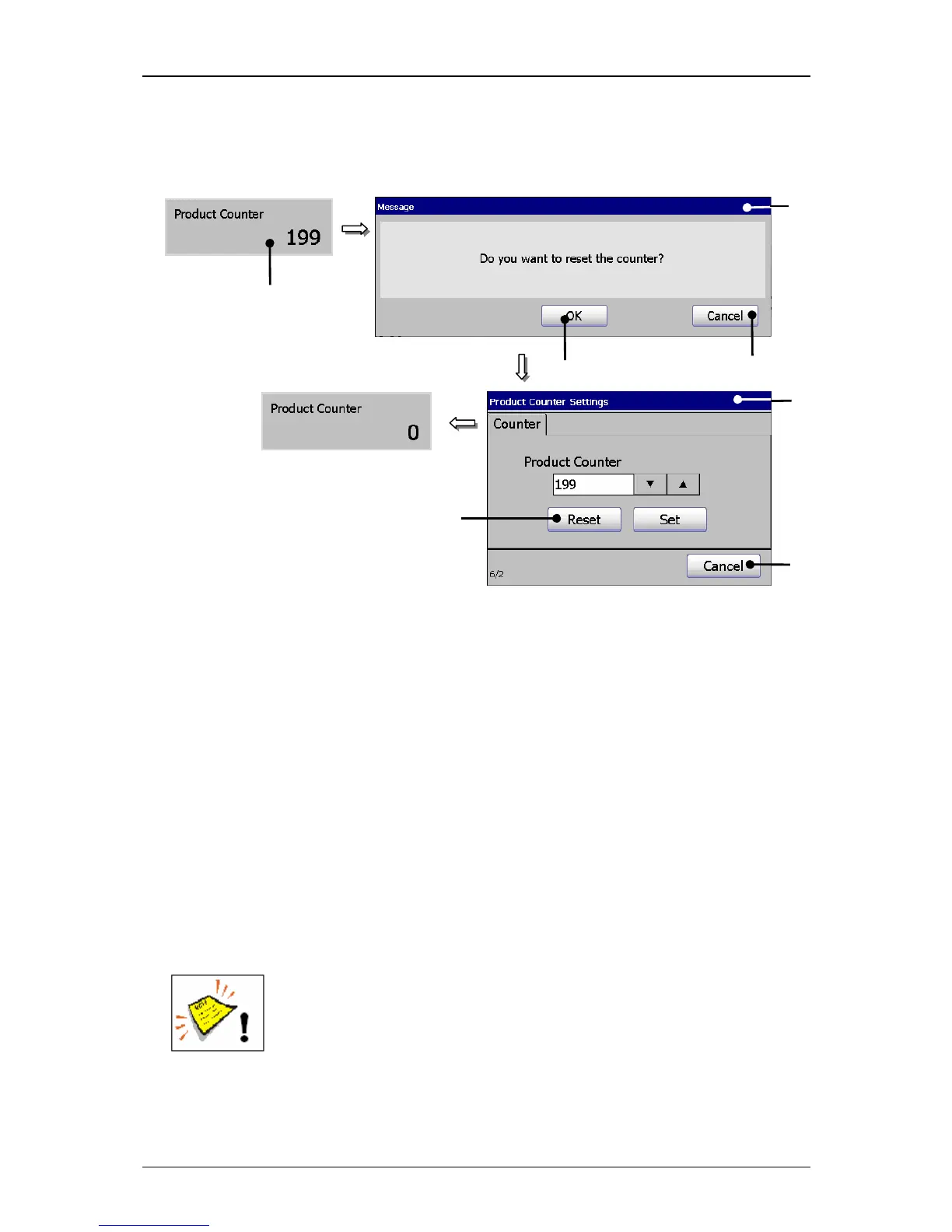 1 – Status field <Product Counter> 5 – Window <Product counter settings>