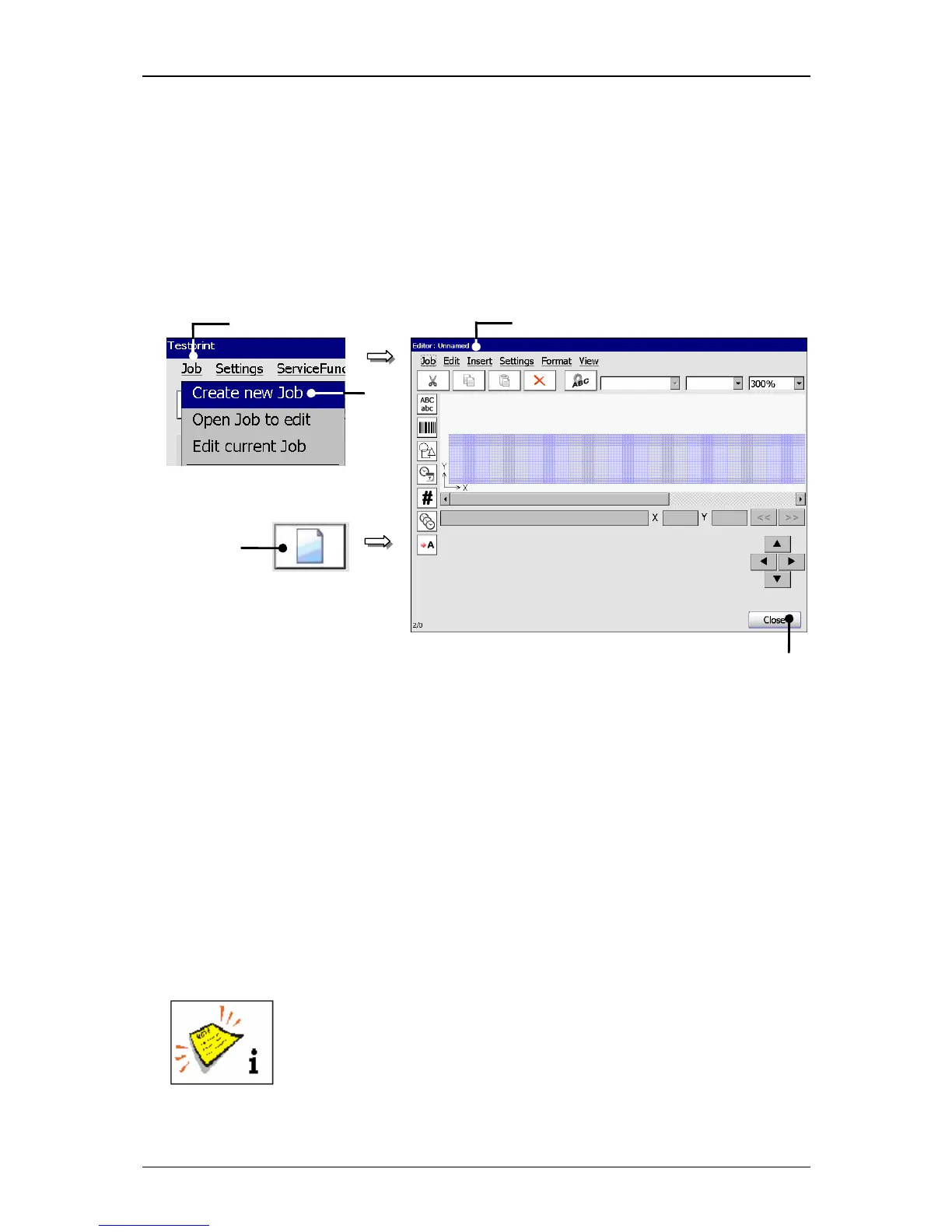1 – Button <Job> 4 – Menu <Jobeditor>