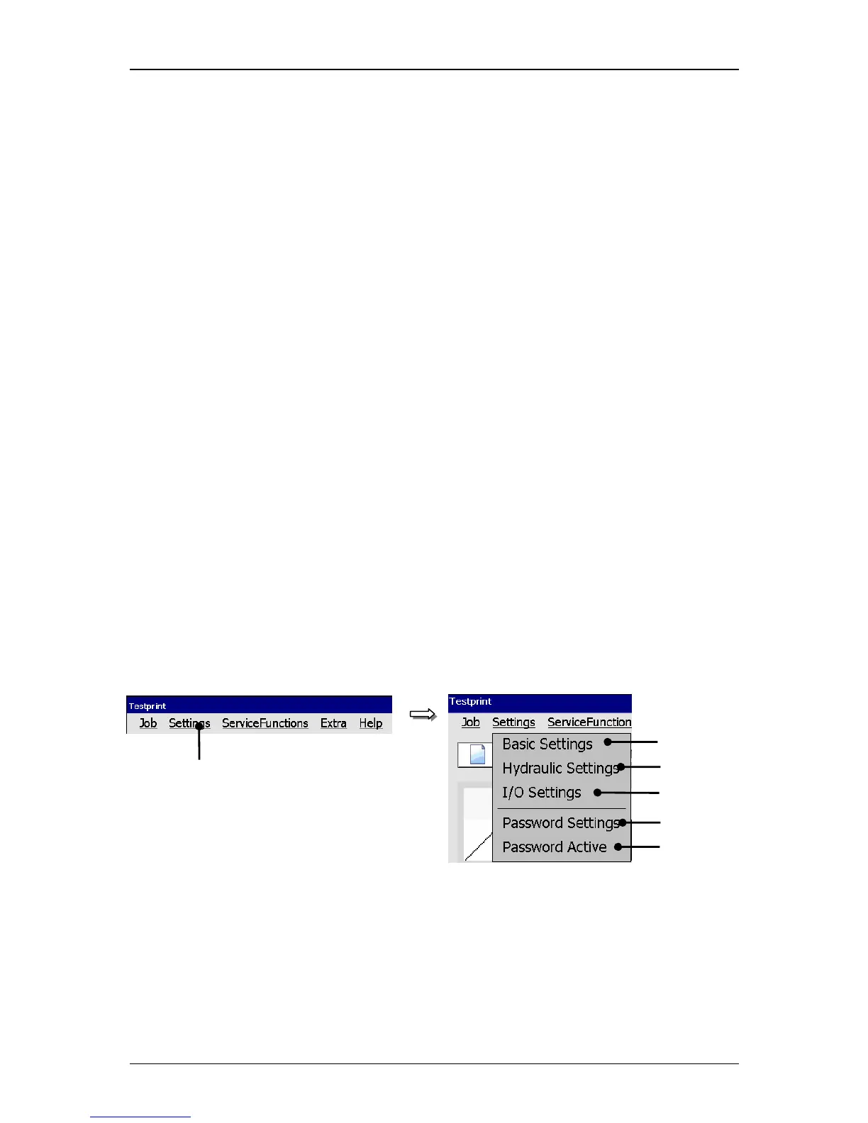 Basic settings Hydraulic settings I/O settings