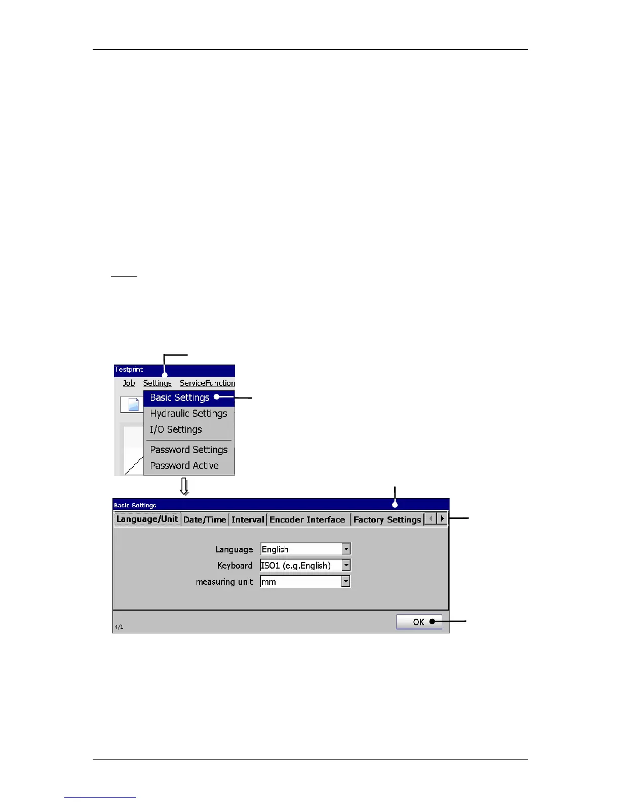 With the option <Basic Settings> (2) the menu „Basic settings“ (3) opens.