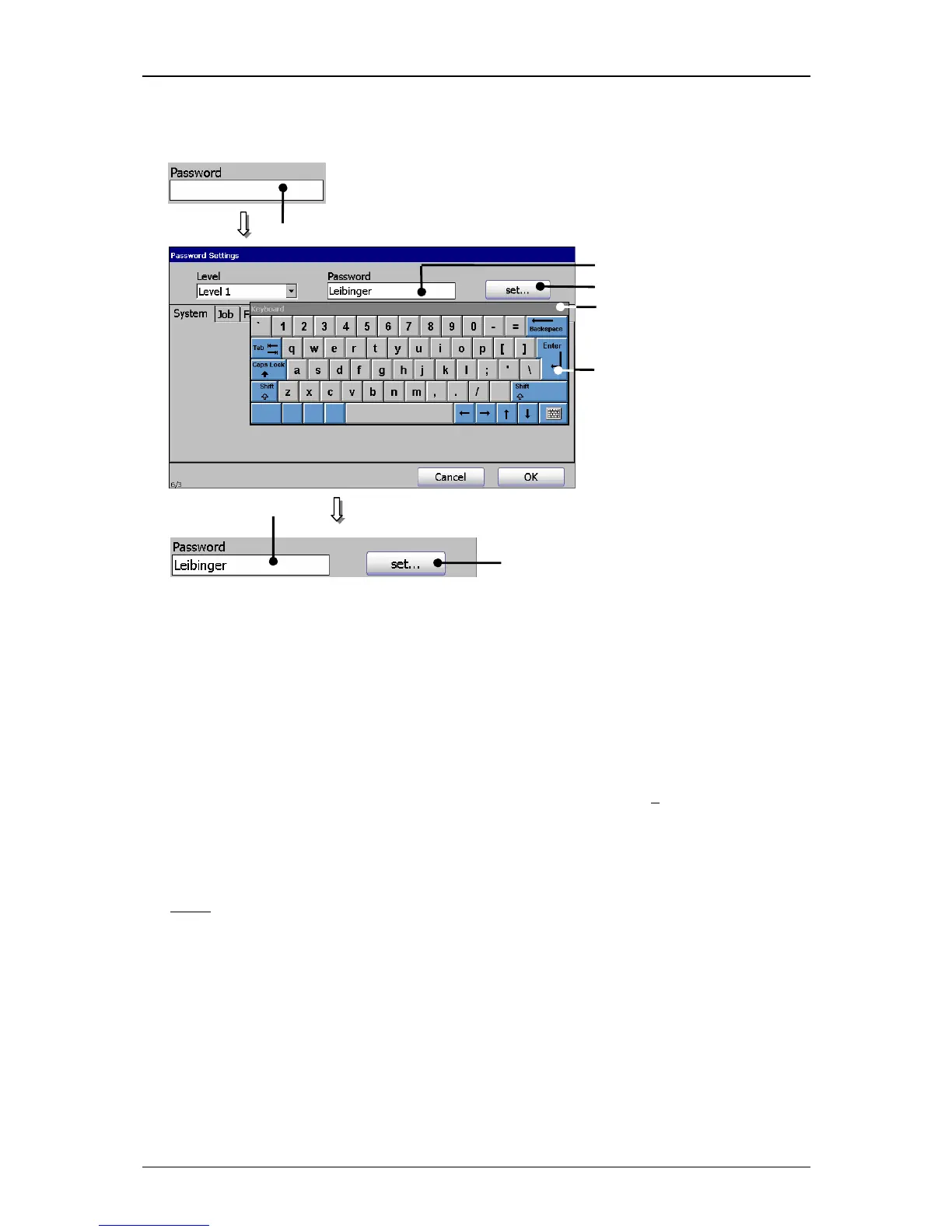 1 – Input field <Password> 3 – Button <Enter>