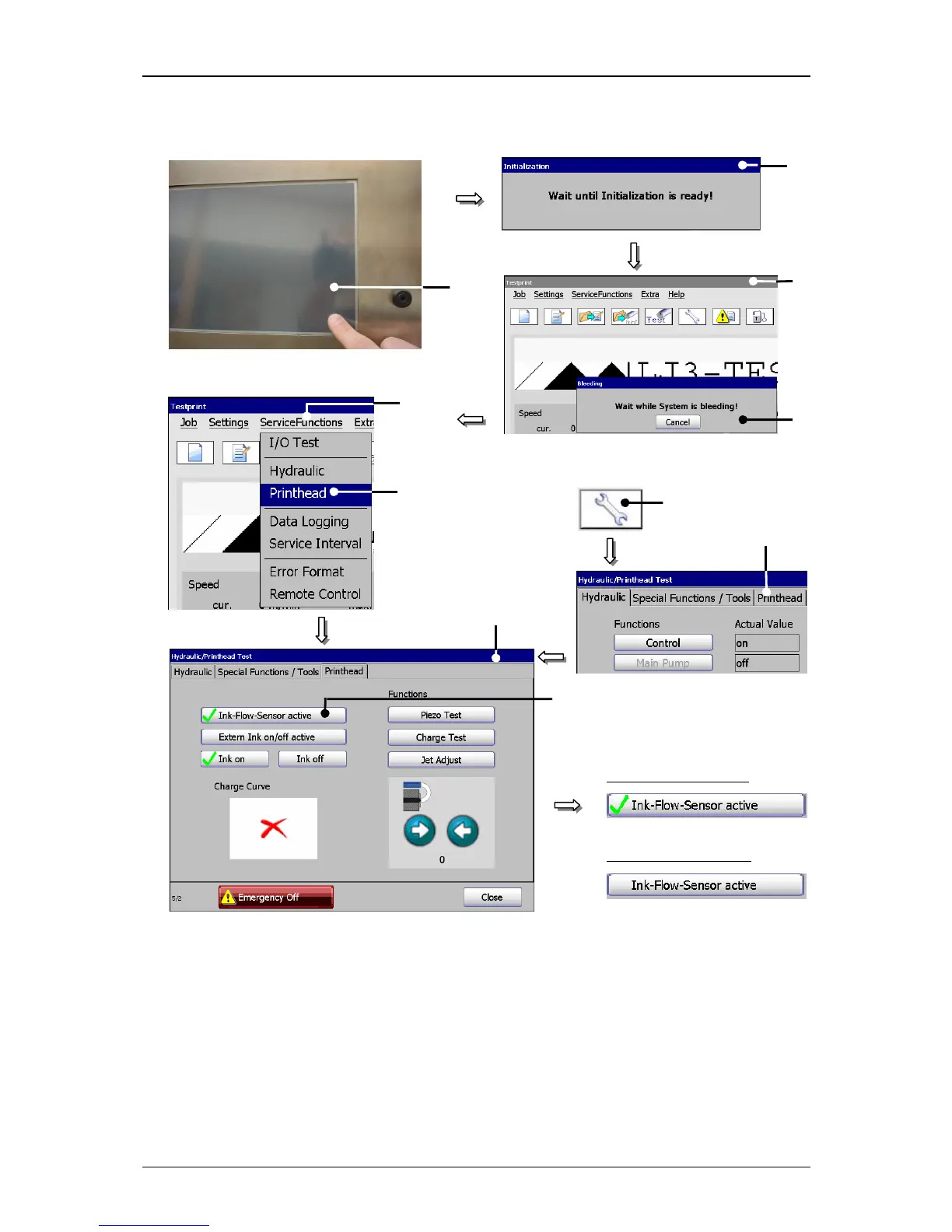 5 – Button <ServiceFunctions> 10 – Button <Ink-Flow-Sensor active>