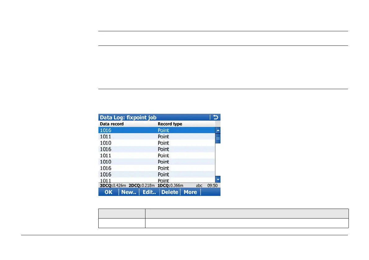 Data Log In the column Data record, all points, lines and areas as well as free codes stored within the