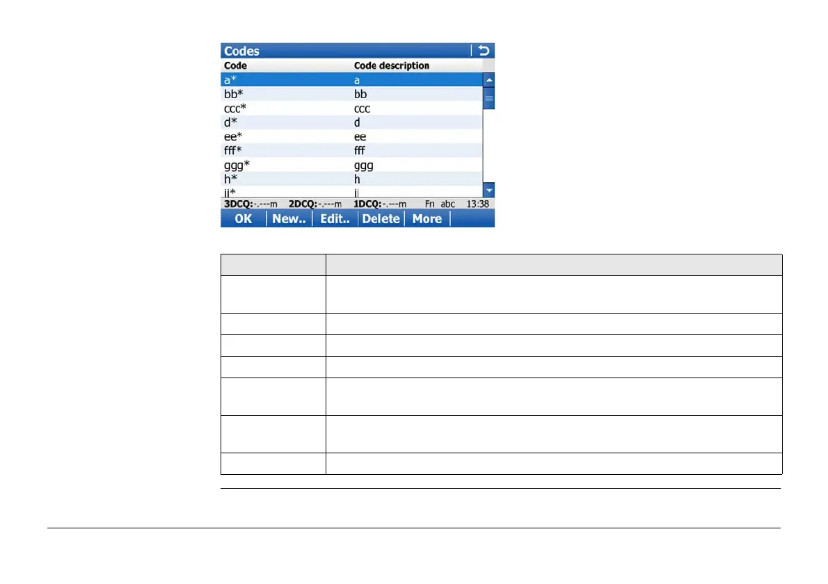 New.. To create a new code. Refer to "7.4.2 Creating/Editing a Code".