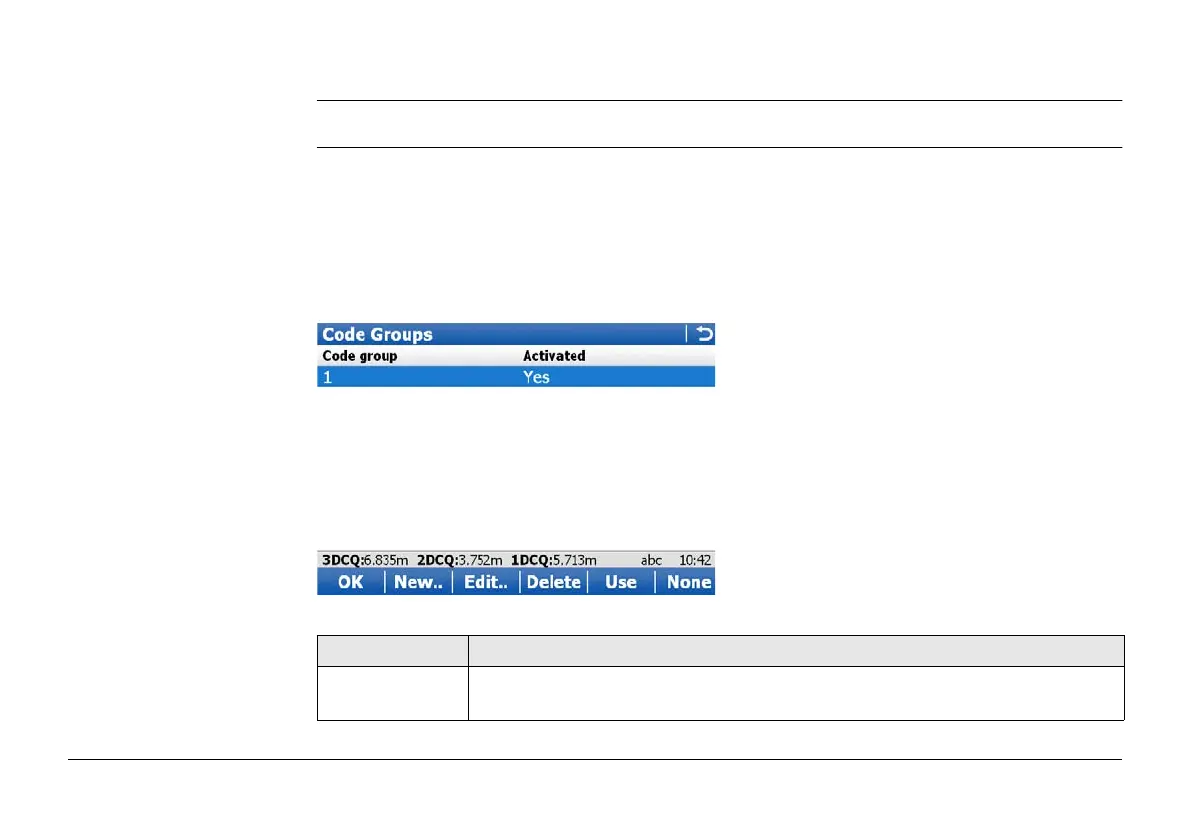 Codes from currently active code groups are shown.