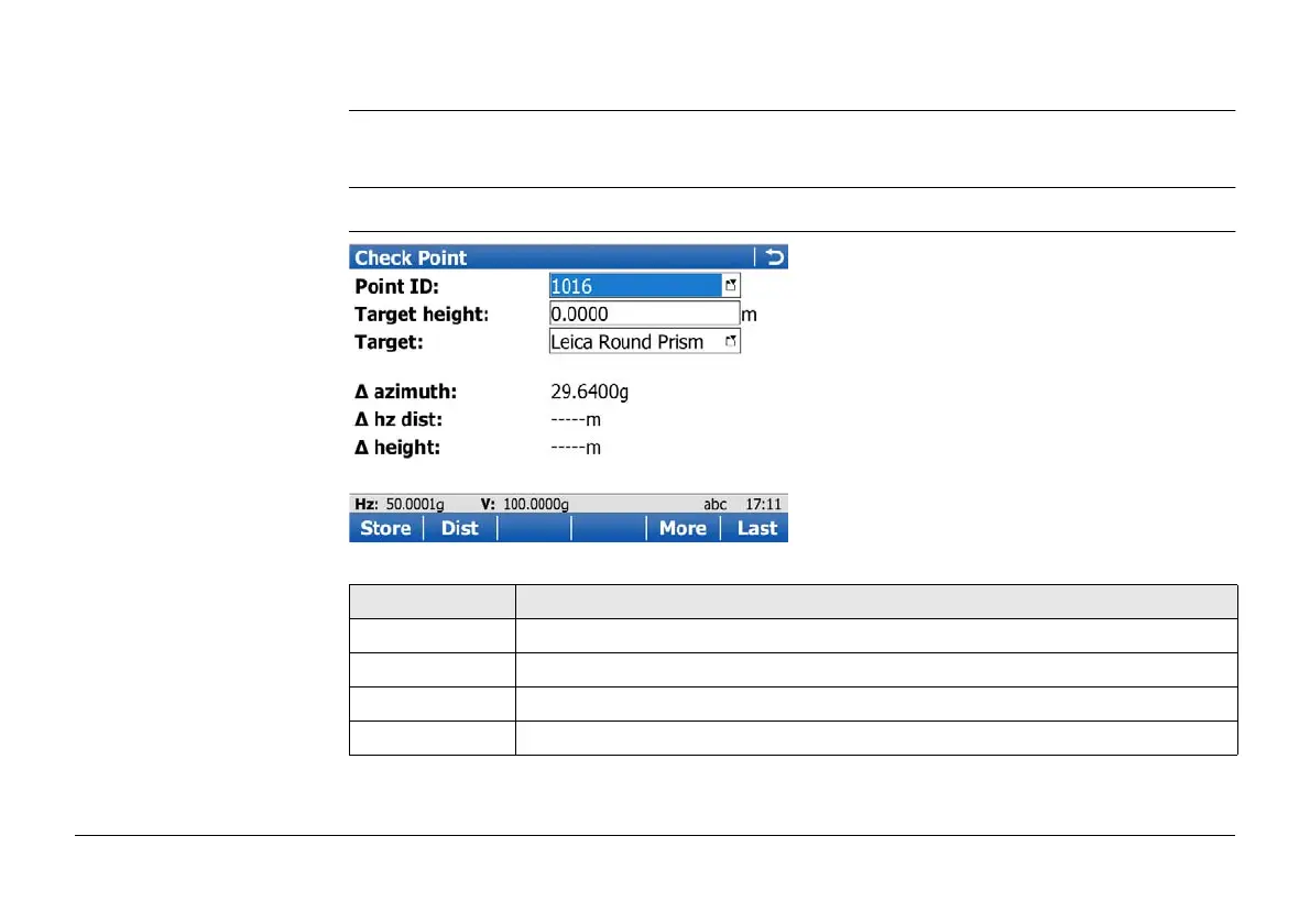 Description This screen is used to check if a measured point is identical to a point already stored in the