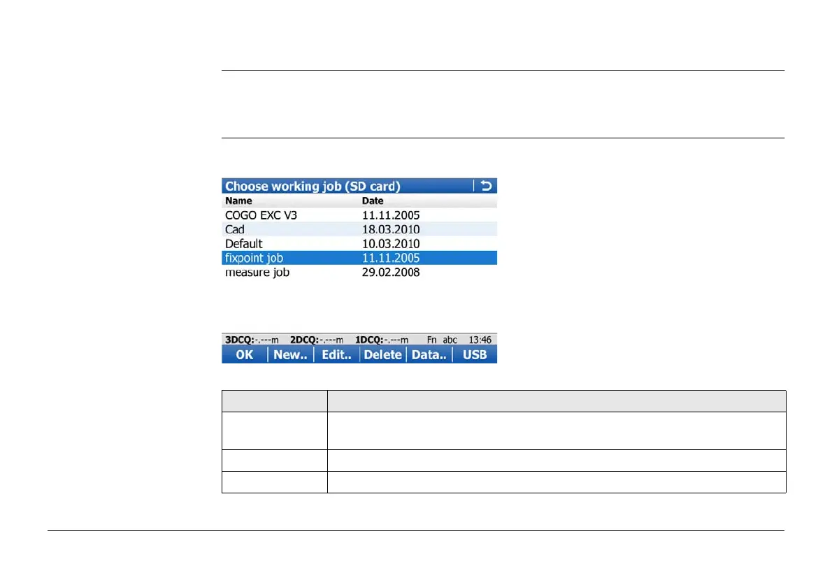 Access • For a working job, where measured points are stored to, select Main Menu: Jobs &