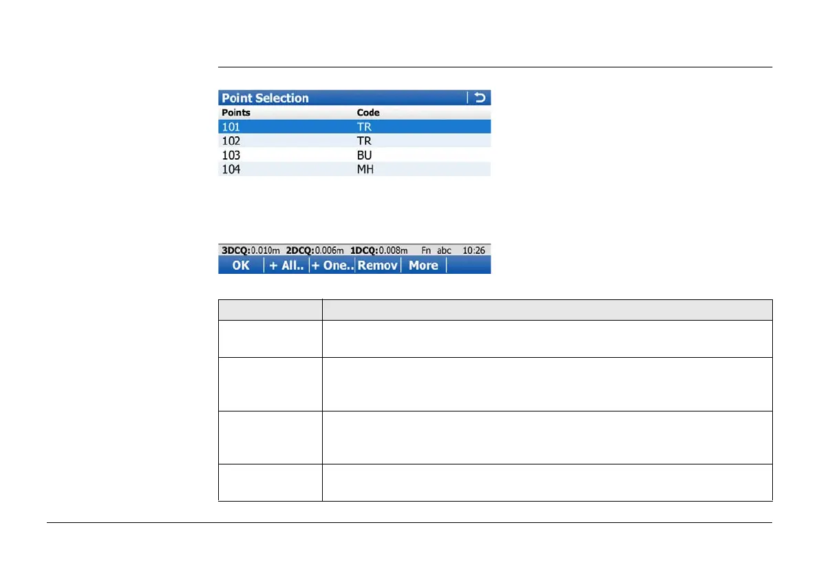 + All.. To add all points from the working job to the list. Selected sort and filter