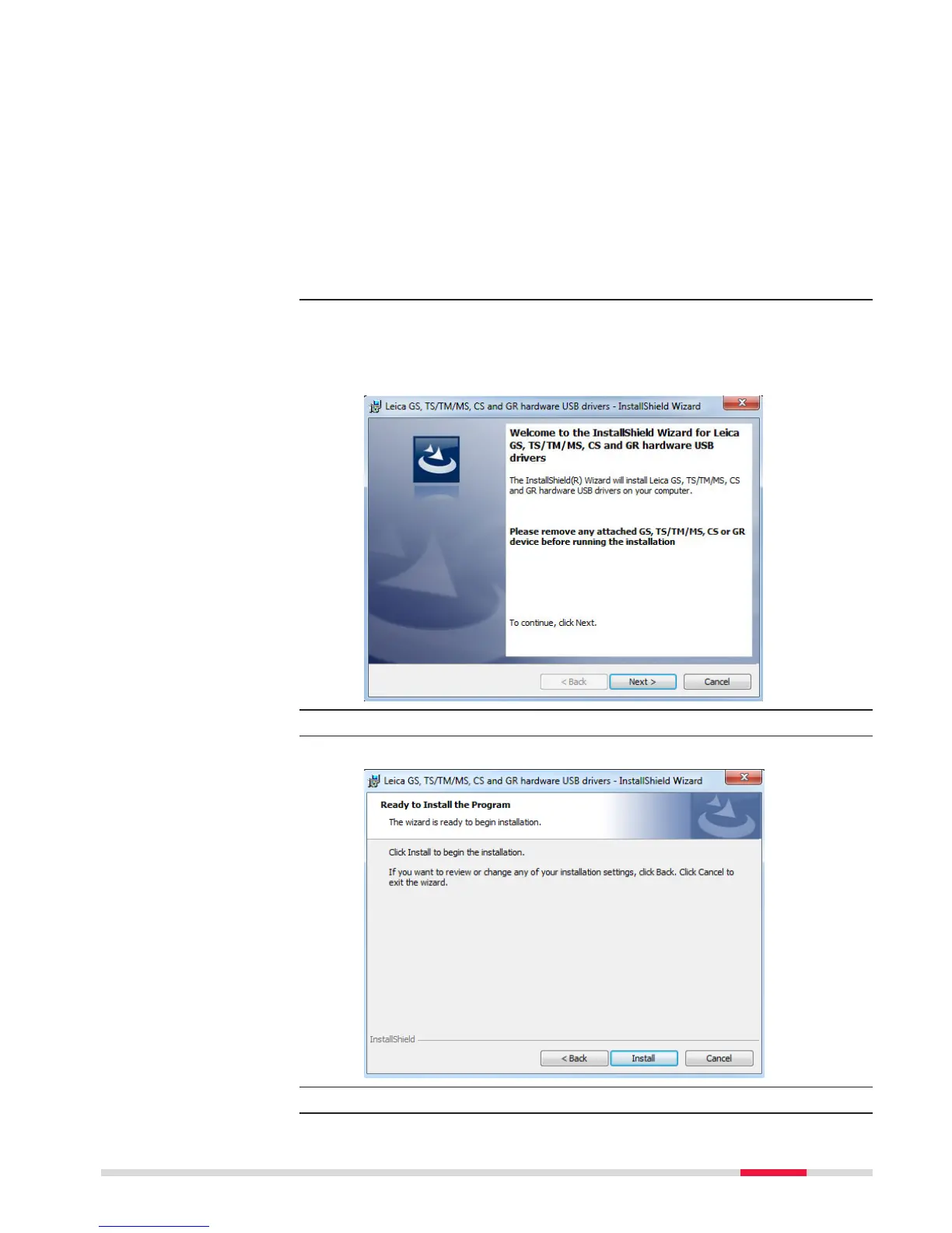 3. The Welcome to InstallShield Wizard for Leica GS, TS/TM/MS,