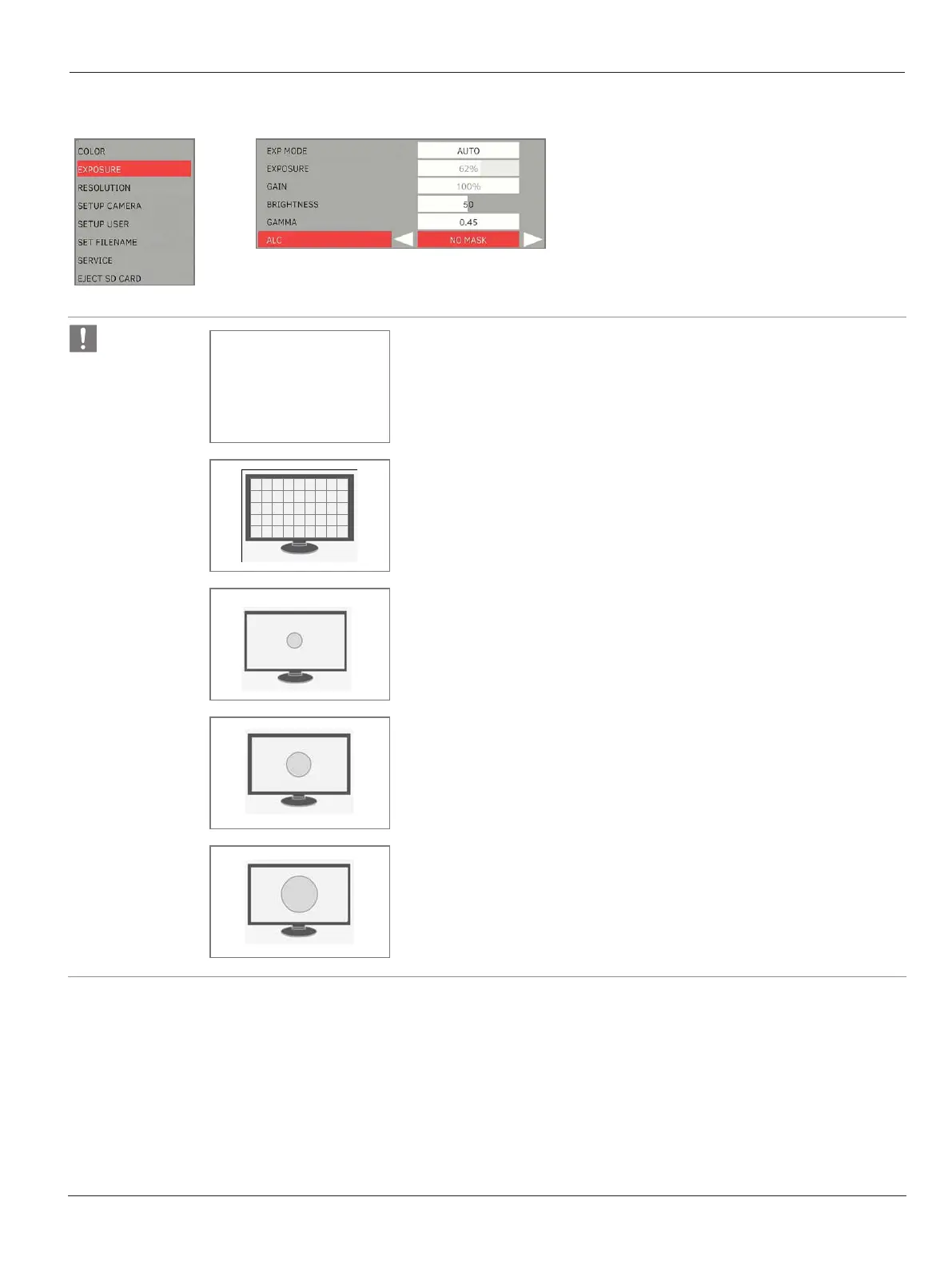 No Mask The exposure is automatically adjusted based on the entire image seen on the