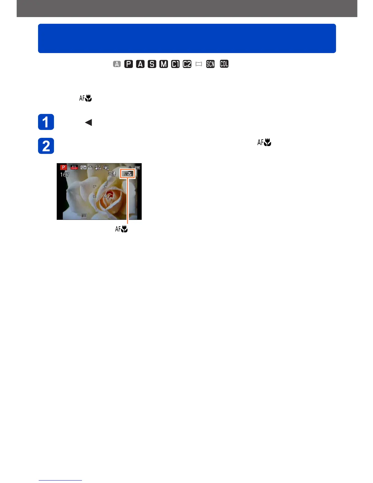 [AF Macro] ( ) enables you to take pictures from a shorter distance than the normal