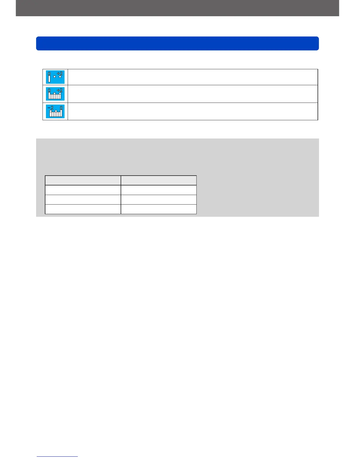Indicates underexposure. For a standard exposure, use a slower shutter speed and/or